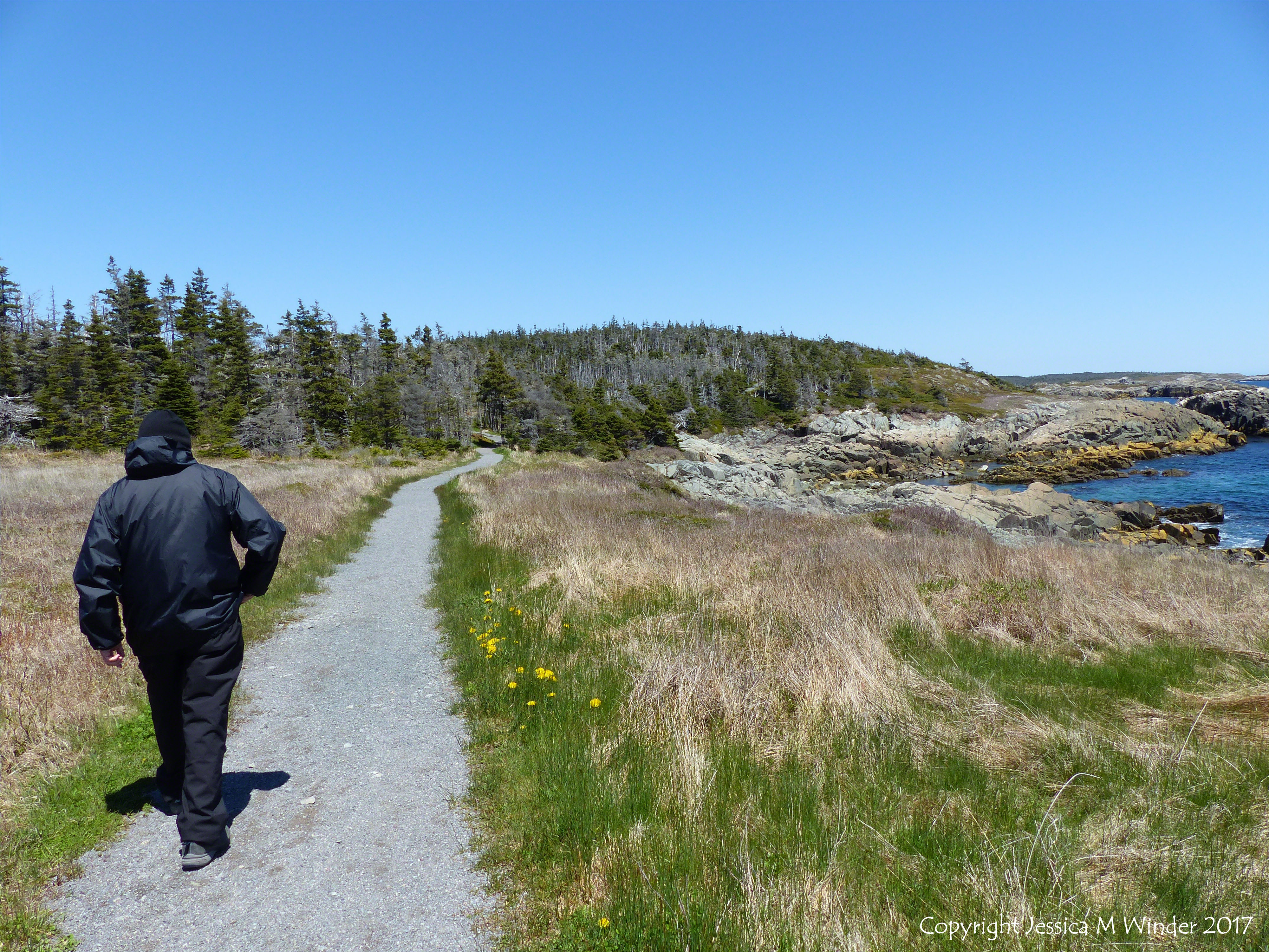Walk to Morning Star Cove 1 – The start of the trail from Louisbourg Lighthouse to Morning Star Cove on Cape Breton Island, Nova Scotia, Canada, May 2016.