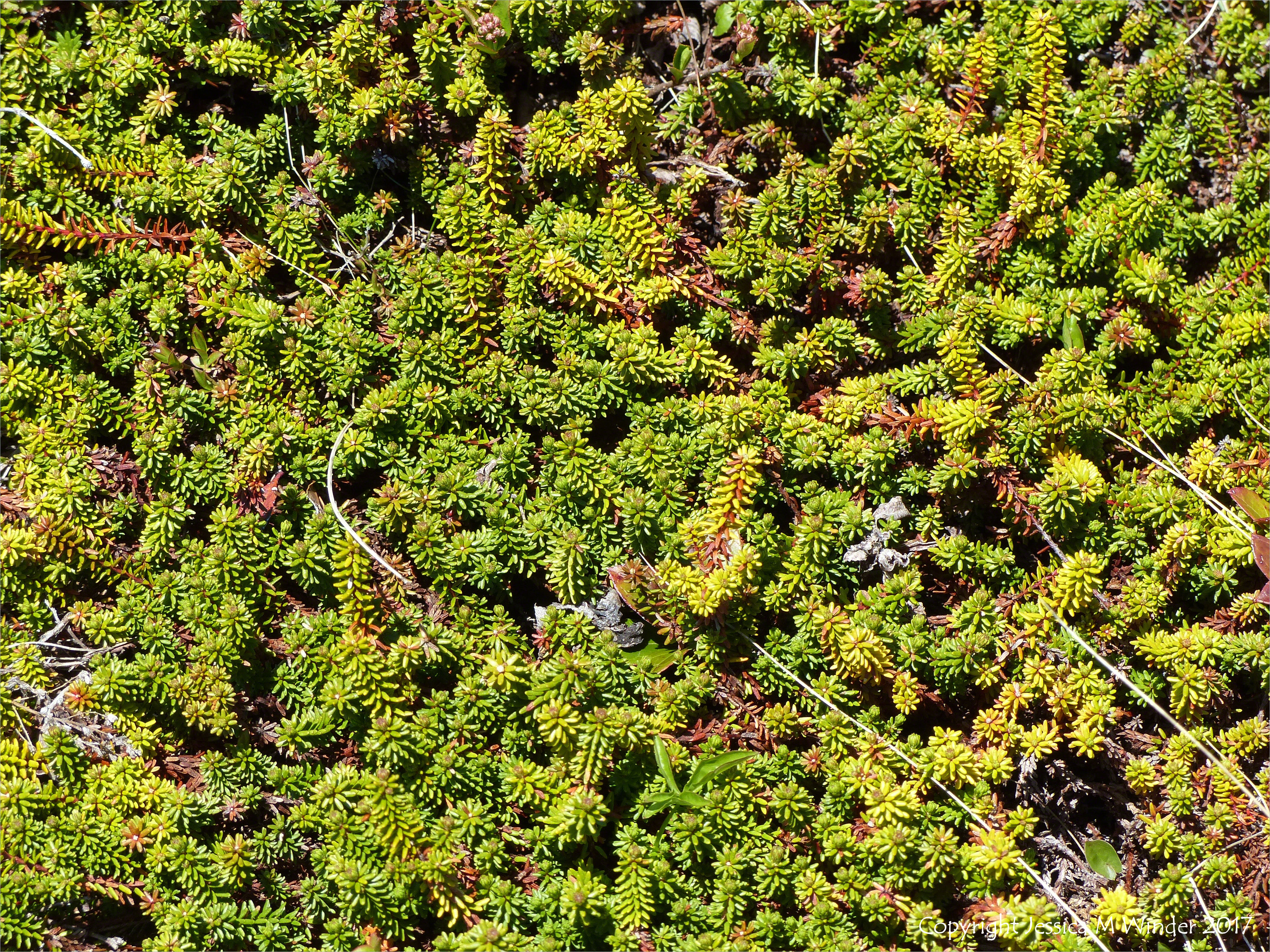 Walk to Morning Star Cove 10 – Crowberry plants by the path along the Louisbourg Lighthouse Trail near Morning Star Cove on Cape Breton Island, Nova Scotia, Canada, 2 June 2016.