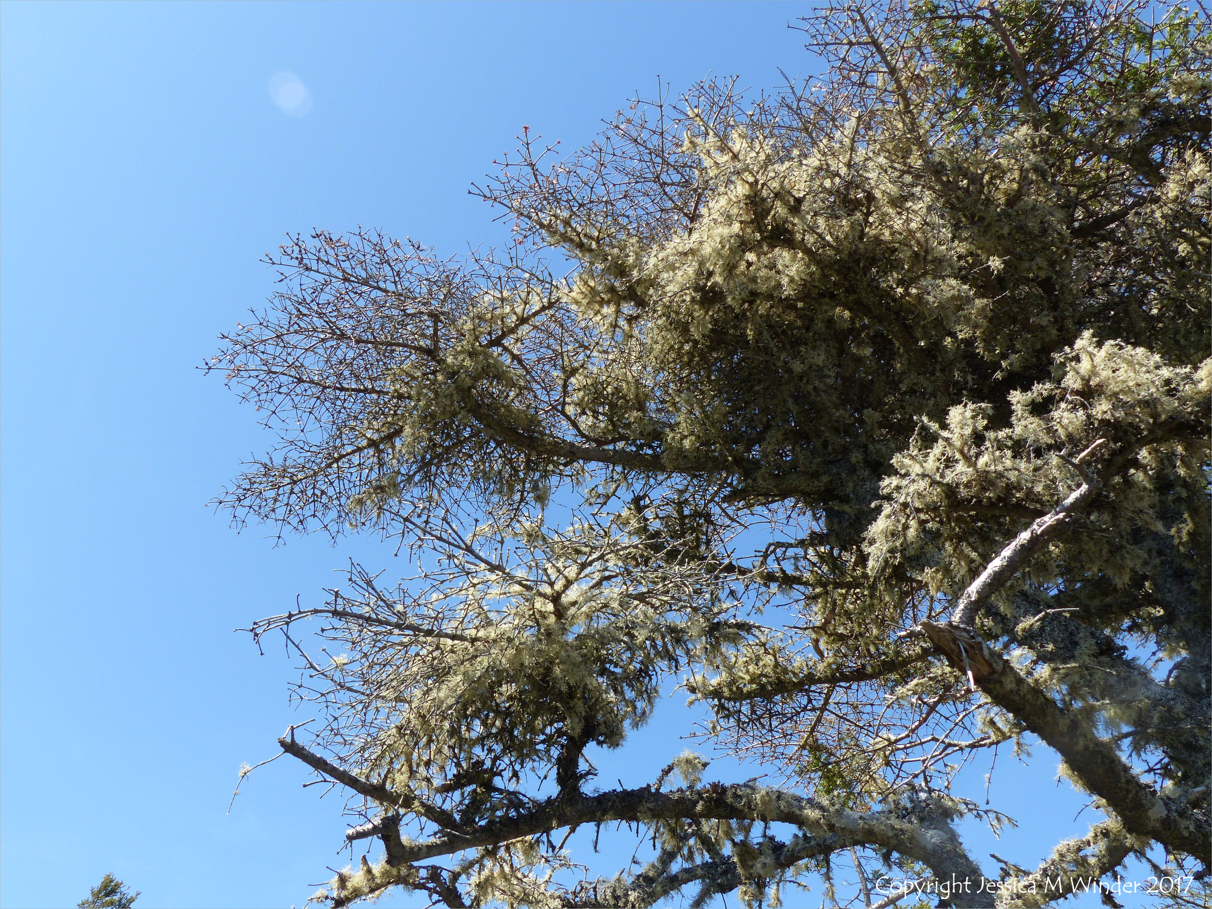 Walk to Morning Star Cove 18 – Lichen growing on bare branches of conifer trees along the Louisbourg Lighthouse Trail near Morning Star Cove on Cape Breton Island, Nova Scotia, Canada, 2 June 2016.
