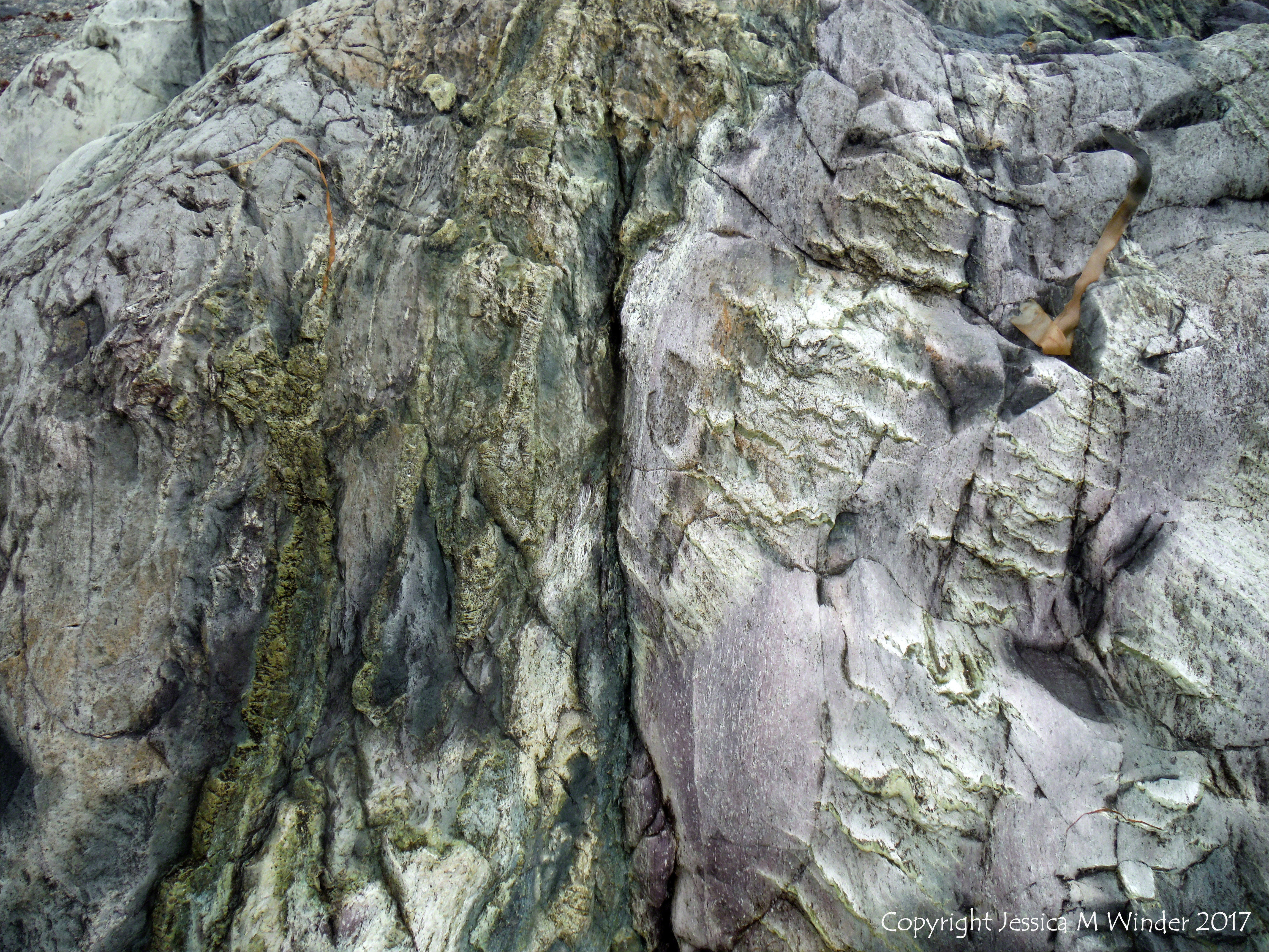 Fourchu Head Rocks 6 – Neoproterozoic volcanic rocks belonging to the Fourchu Sequence dating from as far back as 570 million years ago, found on the beach at Fourchu Head, Cape Breton Island, Nova Scotia, Canada.