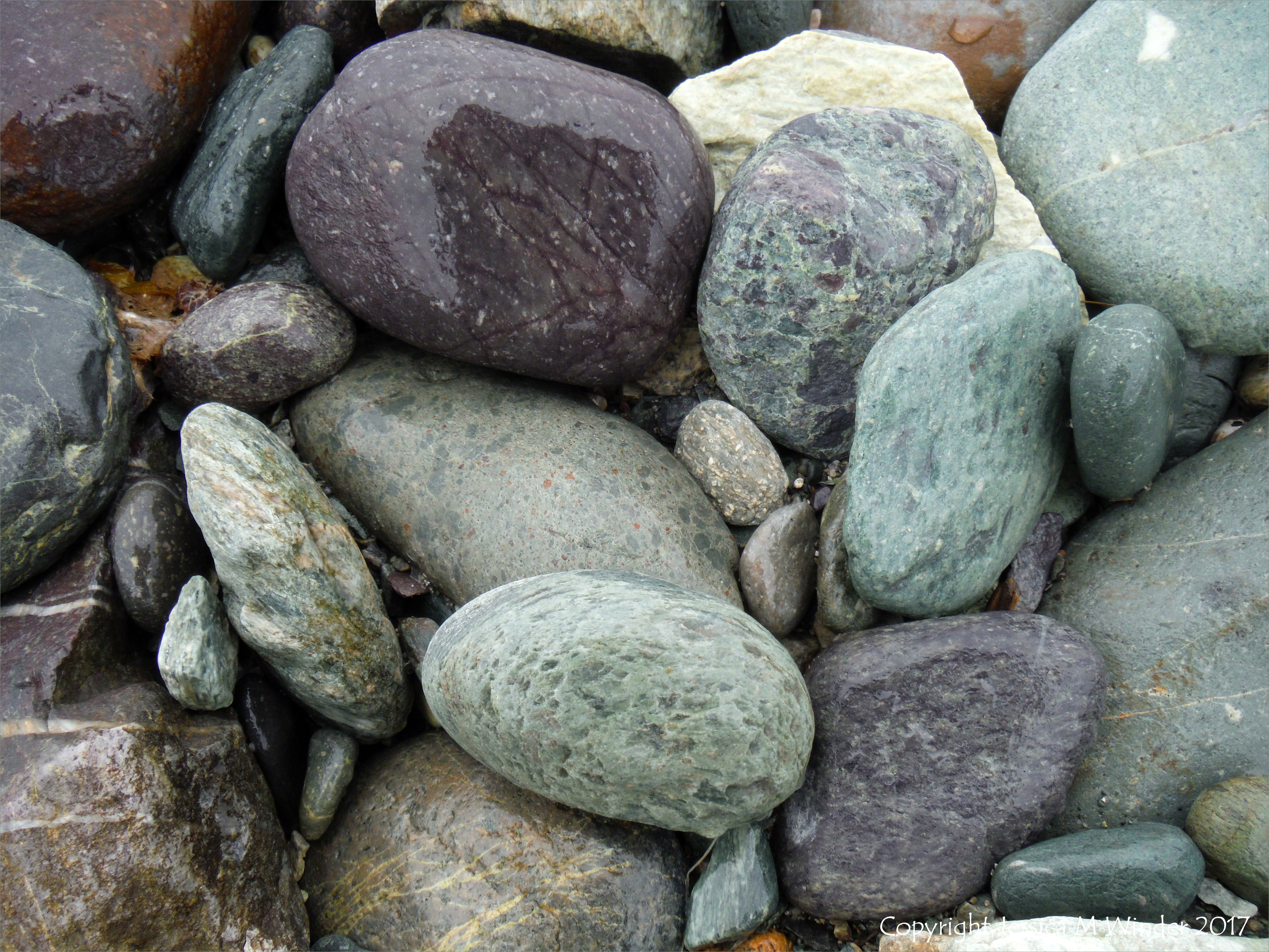 Fourchu Head Rocks 21 – Beach stones of Neoproterozoic volcanic rock belonging to the Fourchu Sequence dating from as far back as 570 million years ago, found on the beach at Fourchu Head, Cape Breton Island, Nova Scotia, Canada.