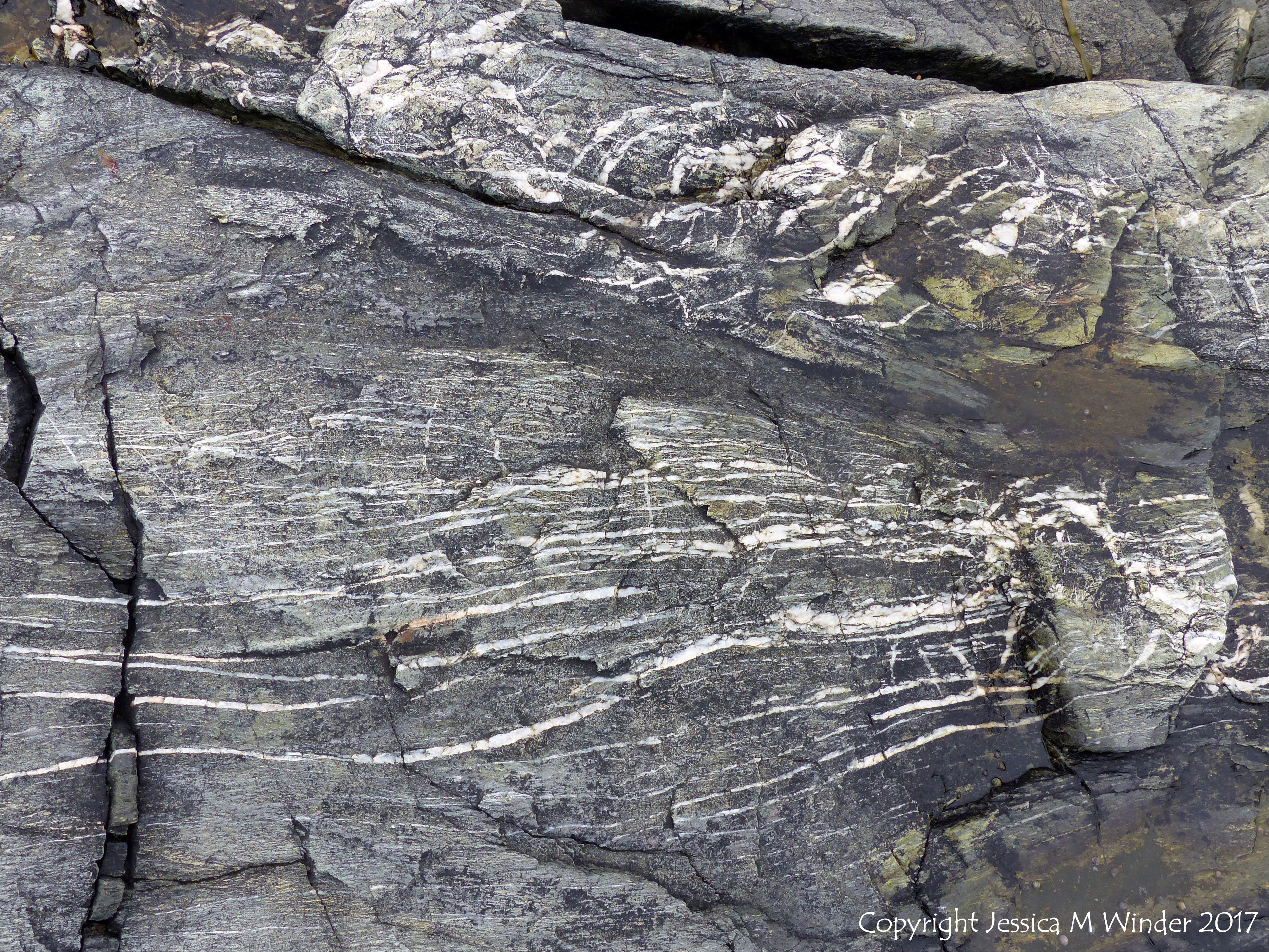 Fourchu Head Rocks 26 – Close-up of Neoproterozoic volcanic rock belonging to the Fourchu Sequence dating from as far back as 570 million years ago, found on the beach at Fourchu Head, Cape Breton Island, Nova Scotia, Canada.