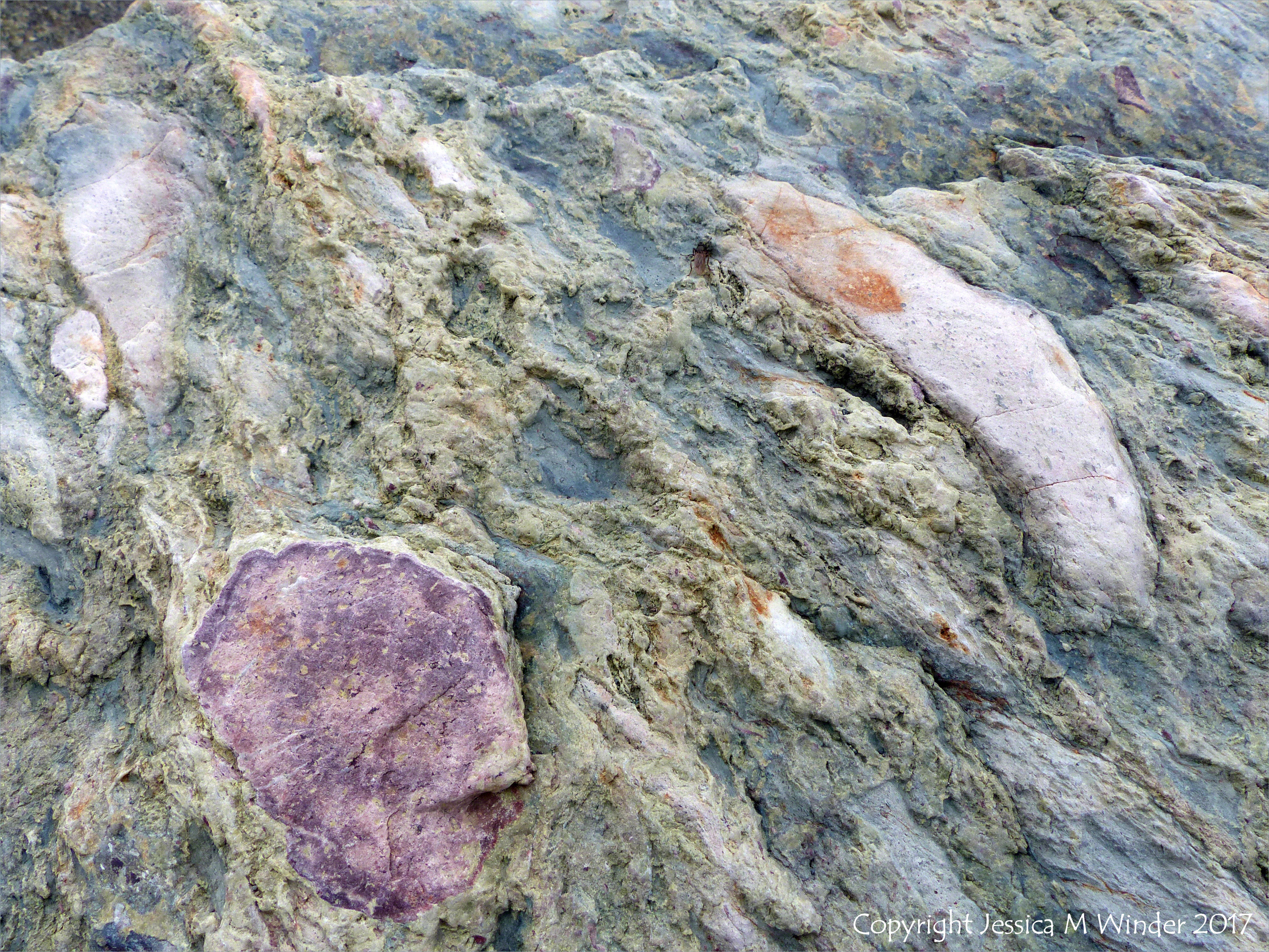 Fourchu Head Rocks 30 – Close-up of Neoproterozoic volcanic rock belonging to the Fourchu Sequence dating from as far back as 570 million years ago, found on the beach at Fourchu Head, Cape Breton Island, Nova Scotia, Canada.