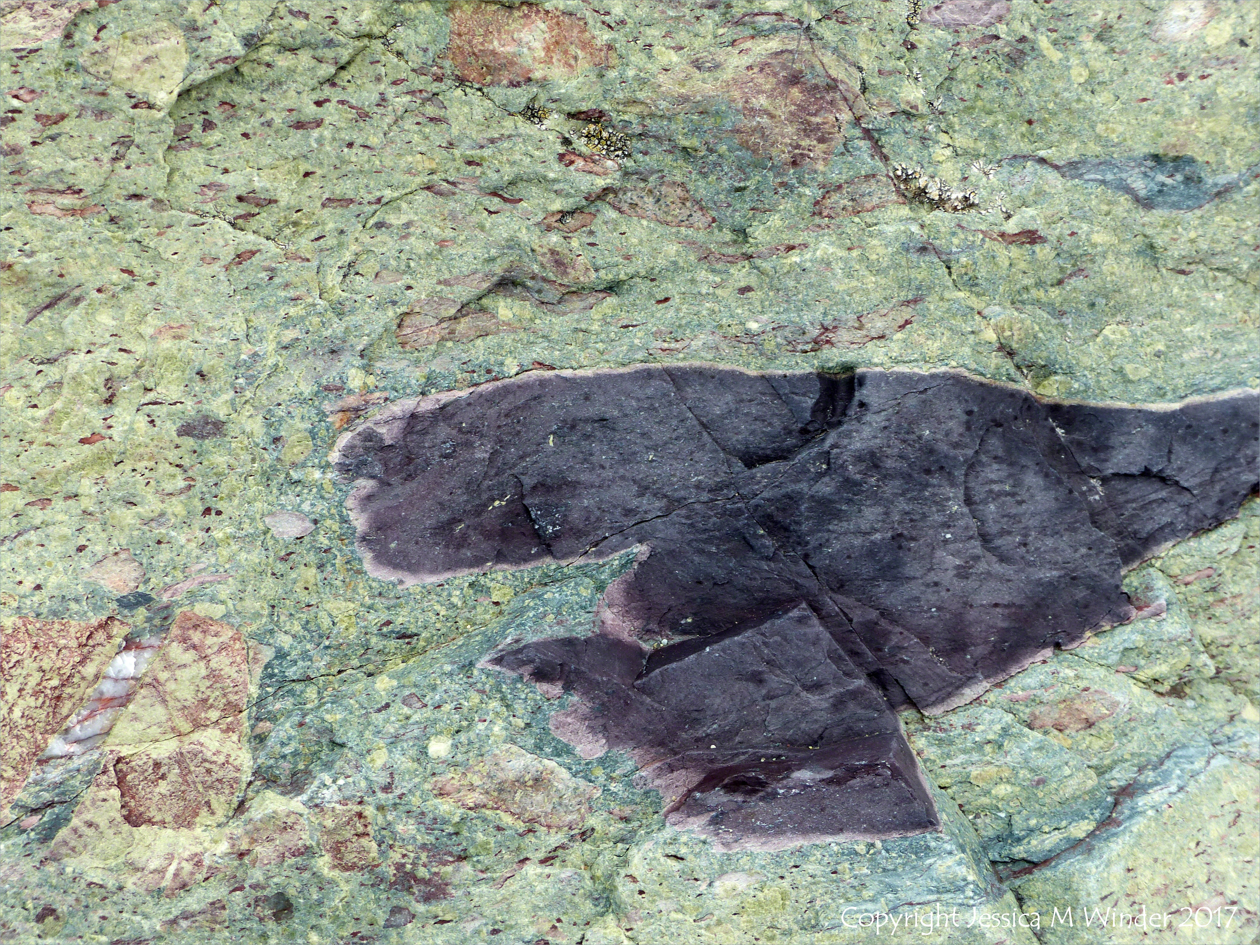 Fourchu Head Rocks 34 – Close-up of Neoproterozoic volcanic rock belonging to the Fourchu Sequence dating from as far back as 570 million years ago, found on the beach at Fourchu Head, Cape Breton Island, Nova Scotia, Canada.
