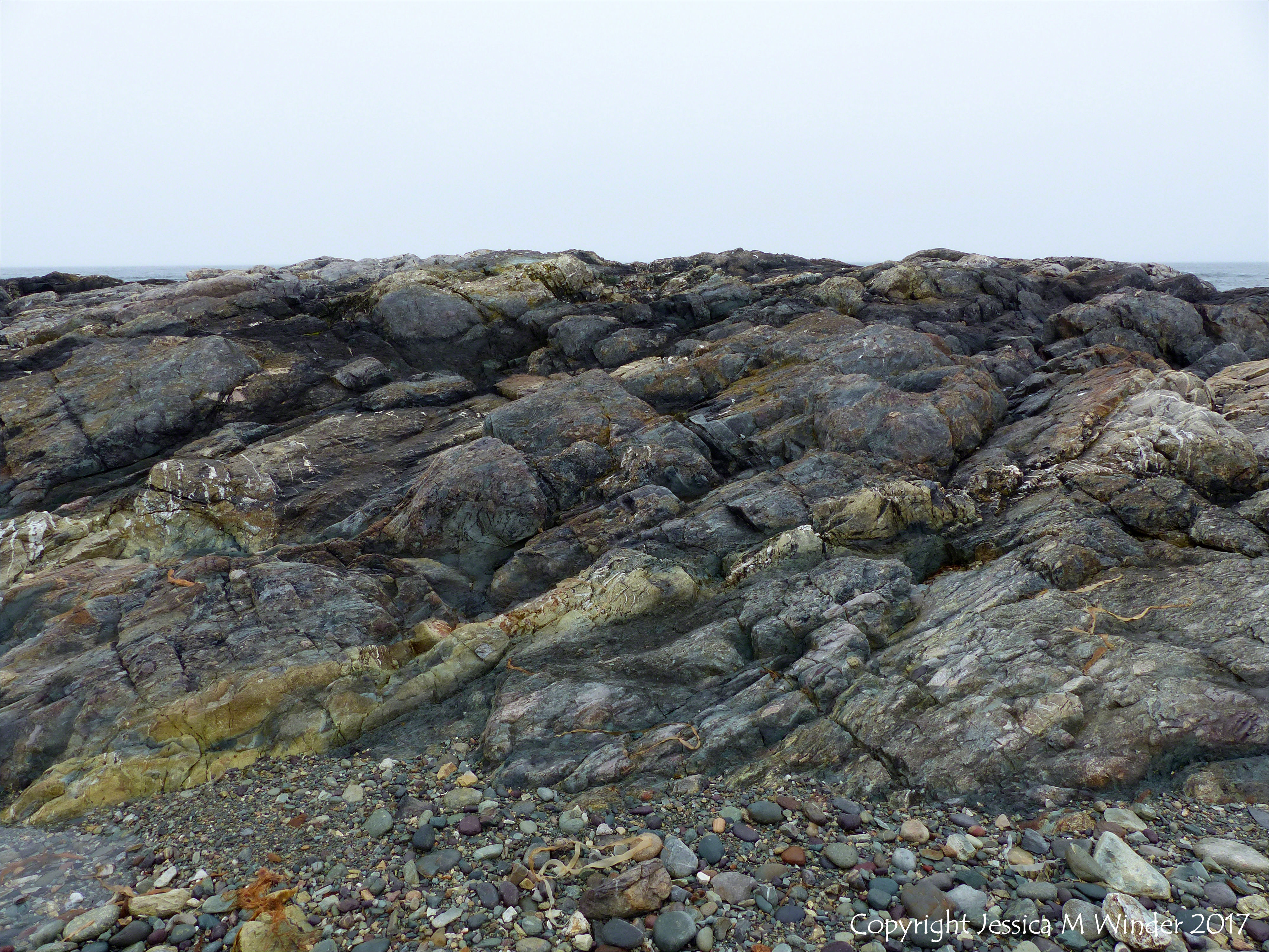 Fourchu Head Rocks 56 – The rocky shore made of Neoproterozoic volcanic rock belonging to the Fourchu Sequence dating from as far back as 570 million years ago, found on the beach at Fourchu Head, Cape Breton Island, Nova Scotia, Canada.