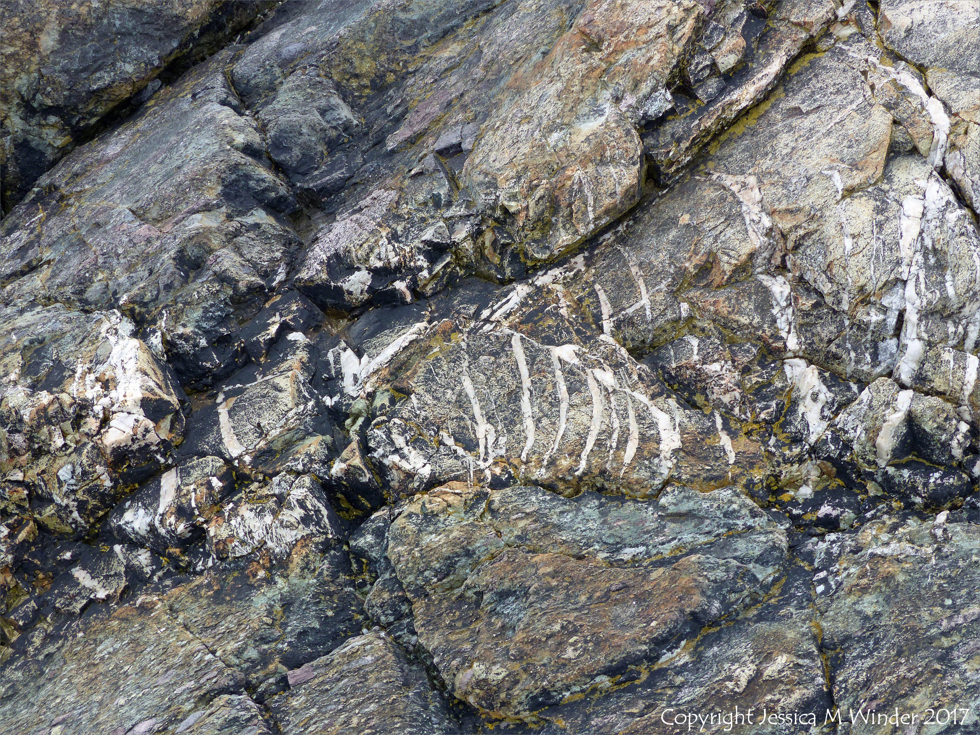 Fourchu Head Rocks 57 – Close-up of Neoproterozoic volcanic rock belonging to the Fourchu Sequence dating from as far back as 570 million years ago, found on the beach at Fourchu Head, Cape Breton Island, Nova Scotia, Canada.