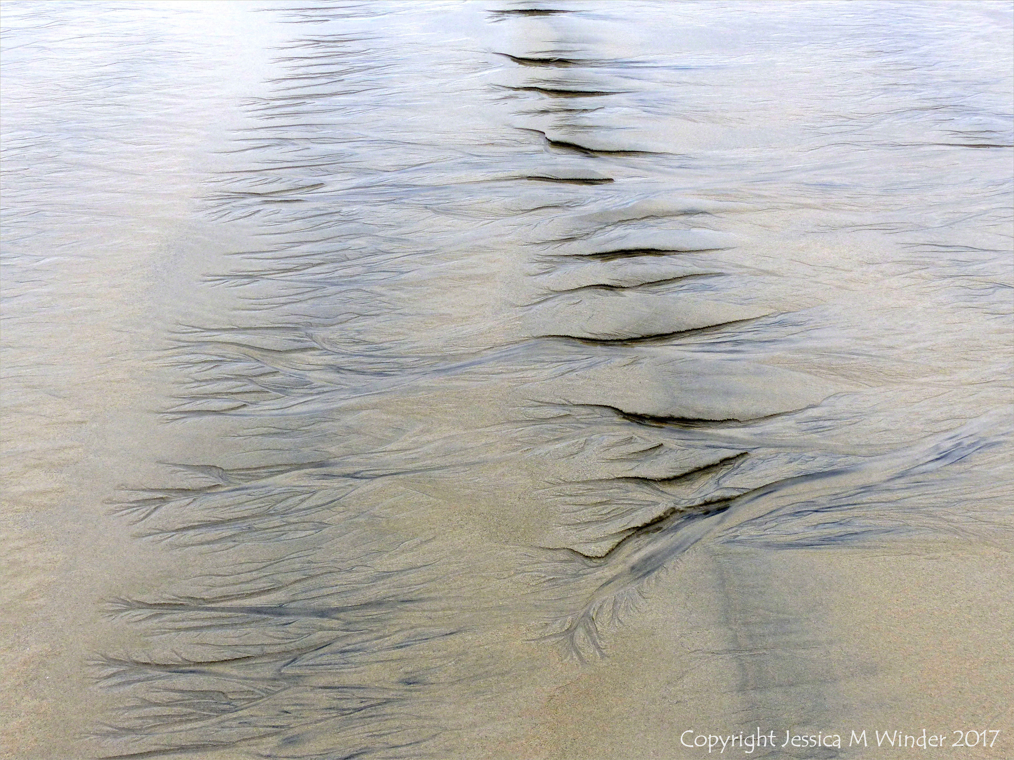 Picquerel Sand Patterns 7 – Natural abstract art showing dendritic drainage patterns in sand on the beach near Picquerel Point on Grand Havre, Guernsey, Channel Islands.