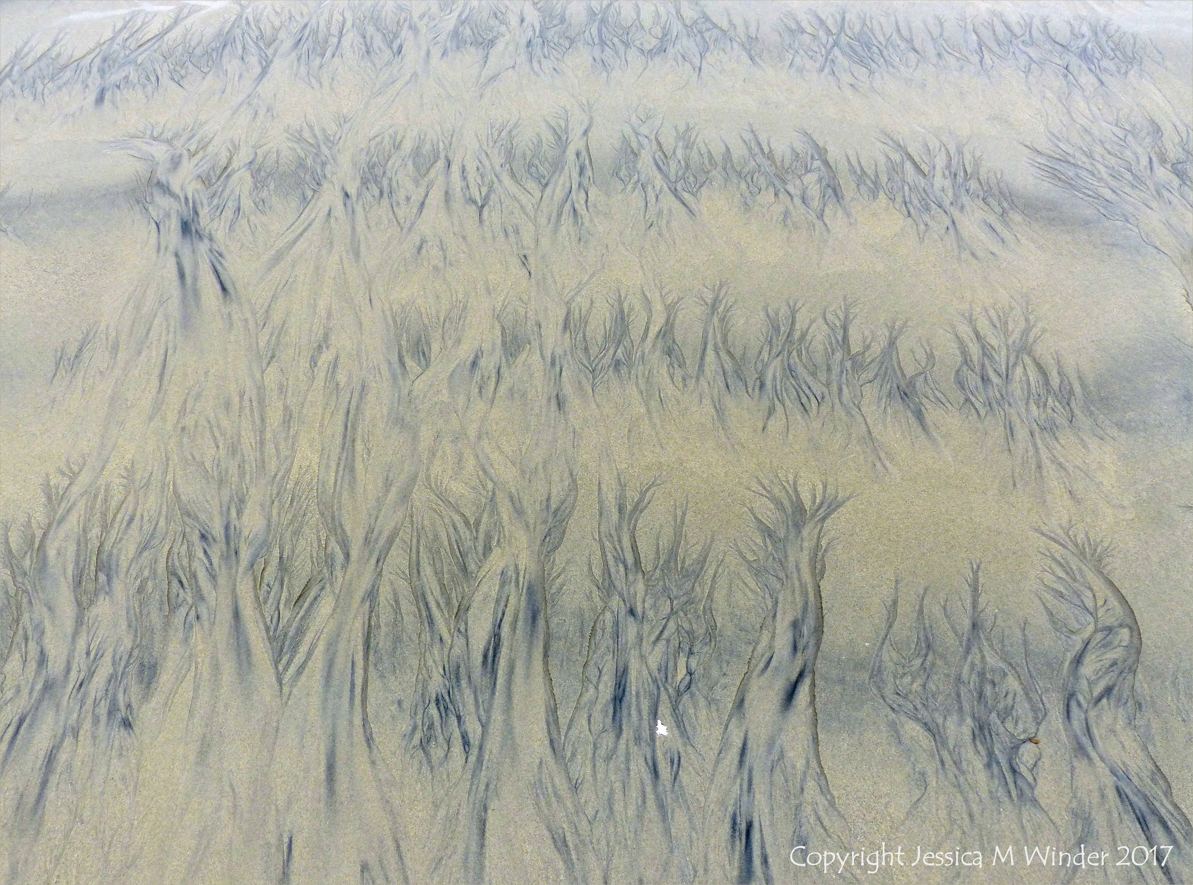 Picquerel Sand Patterns 11 – Natural abstract art showing dendritic drainage patterns in sand on the beach near Picquerel Point on Grand Havre, Guernsey, Channel Islands.