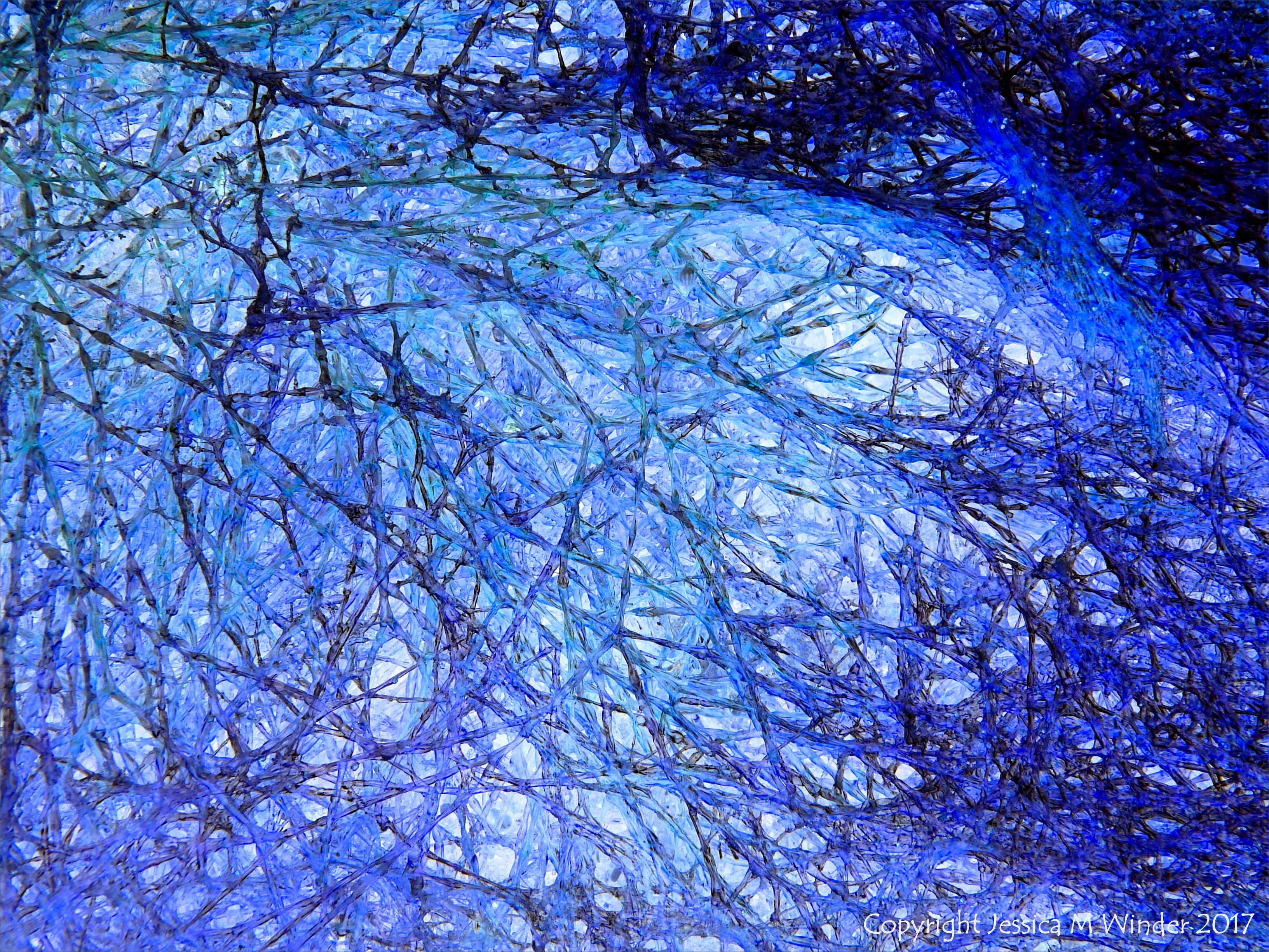 Thank you, Jan. I was wanting to focus on the pattern and structure of the seaweed rather than its identity as such. Transforming from the mainly green hues to blue, by converting to a negative version of the image, helped that process of allowing the viewer to appreciate the form in the abstract. The intertwining filaments of the seaweed were translucent gelatinous threads like a fine version of Japanese glass noodles.