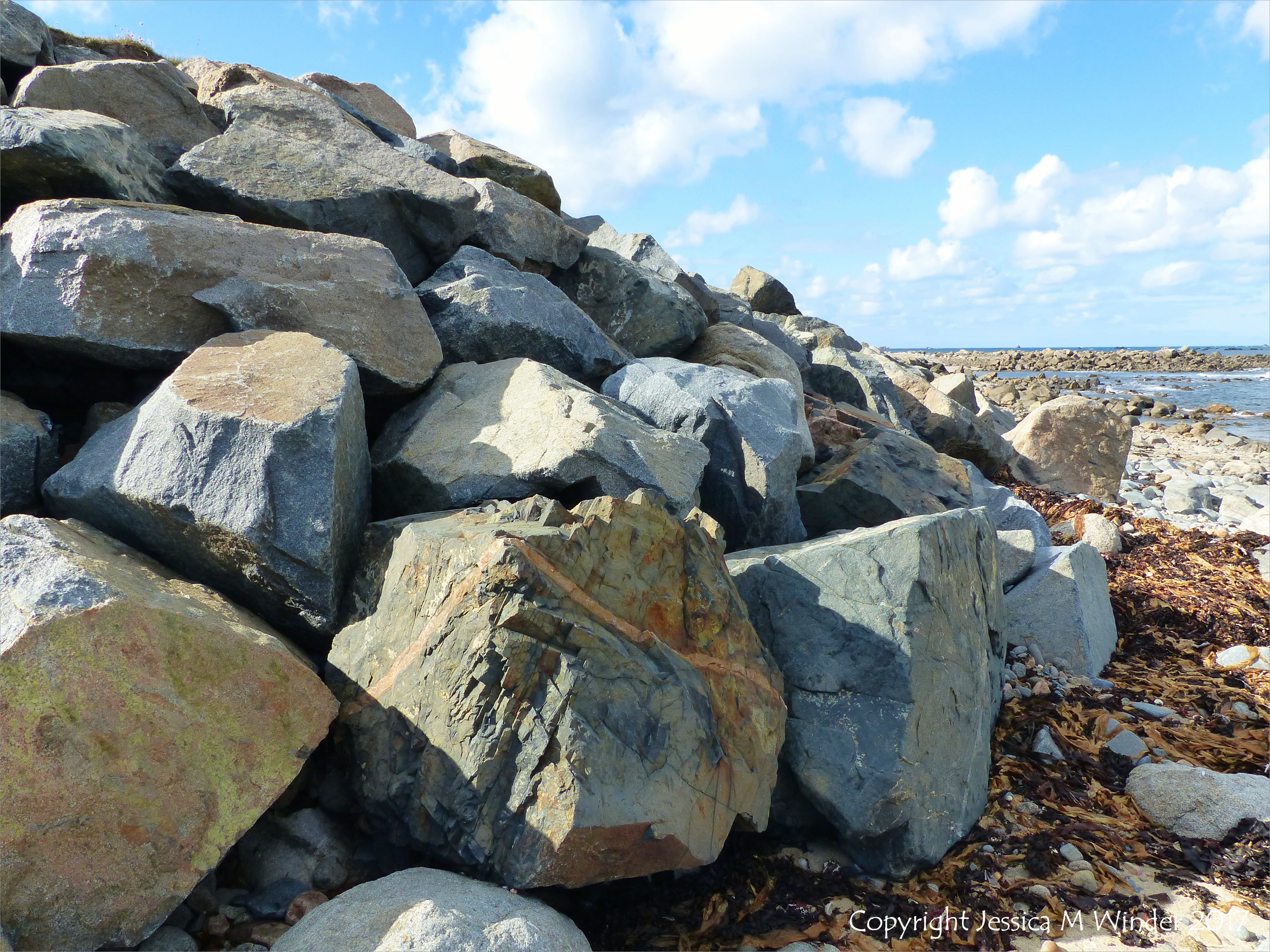 Rousse Point Rock Picture 5 – Boulders on the beach at Rousse Point in the Channel Island of Guernsey possibly emplaced for sea defence.