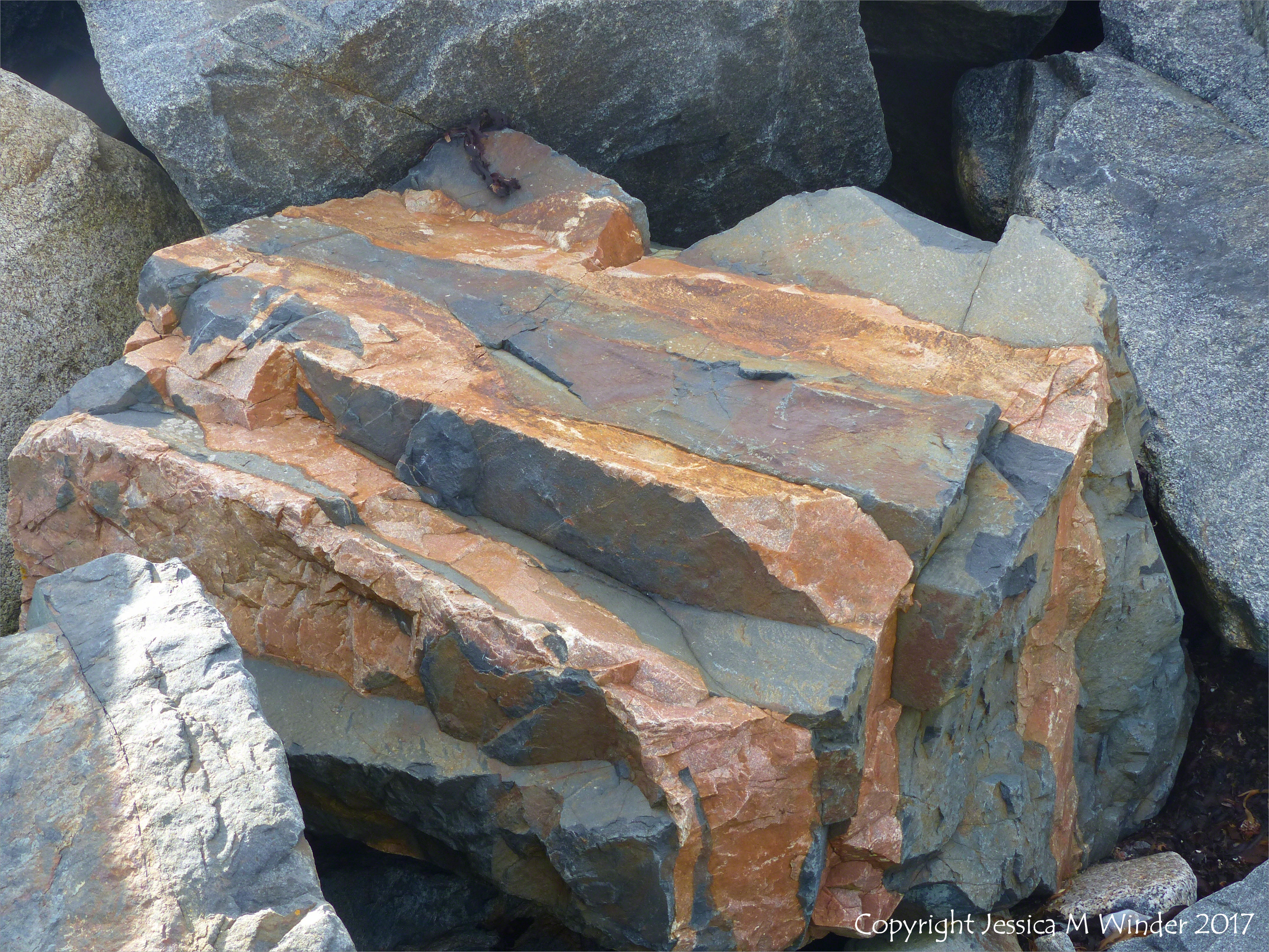Rousse Point Rock Picture 9 Rousse Point Rock Picture 9 – Striped boulder on the beach at Rousse Point in the Channel Island of Guernsey.