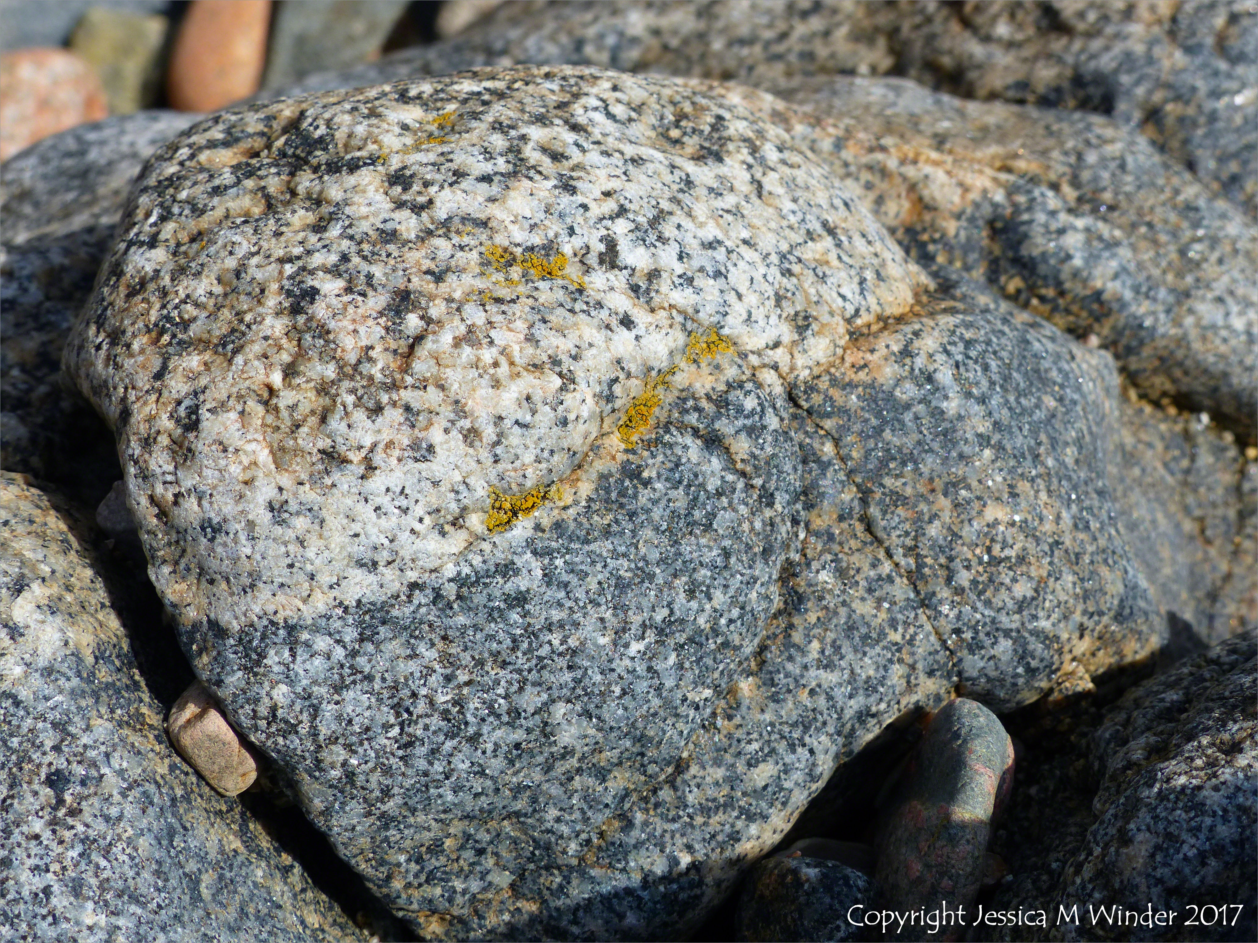 Rousse Point Rock Picture 11 – Beach boulder showing junction of two granite types at Rousse Point on the Channel island of Guernsey