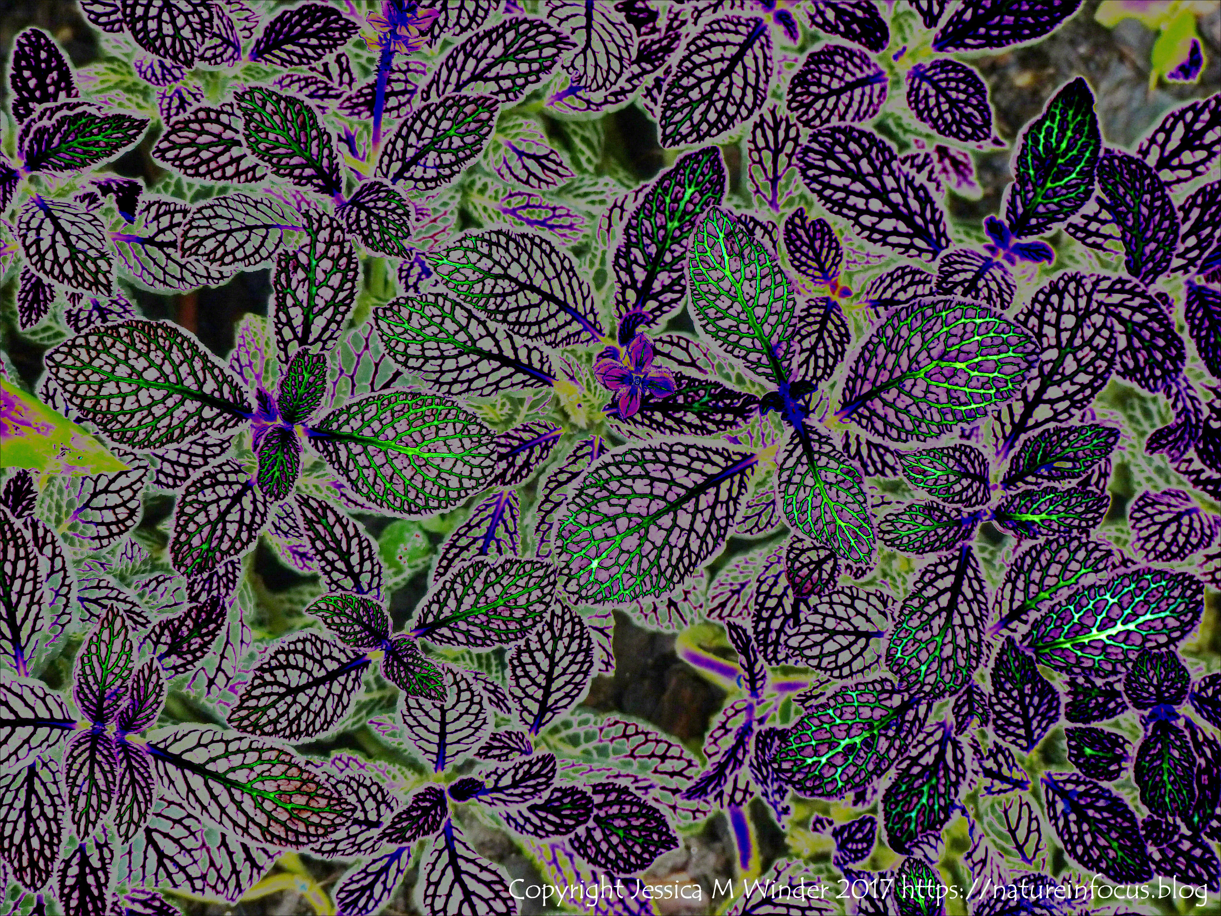 Striped Leaves 1 – Leaf vein patterns in a digitally altered photograph.