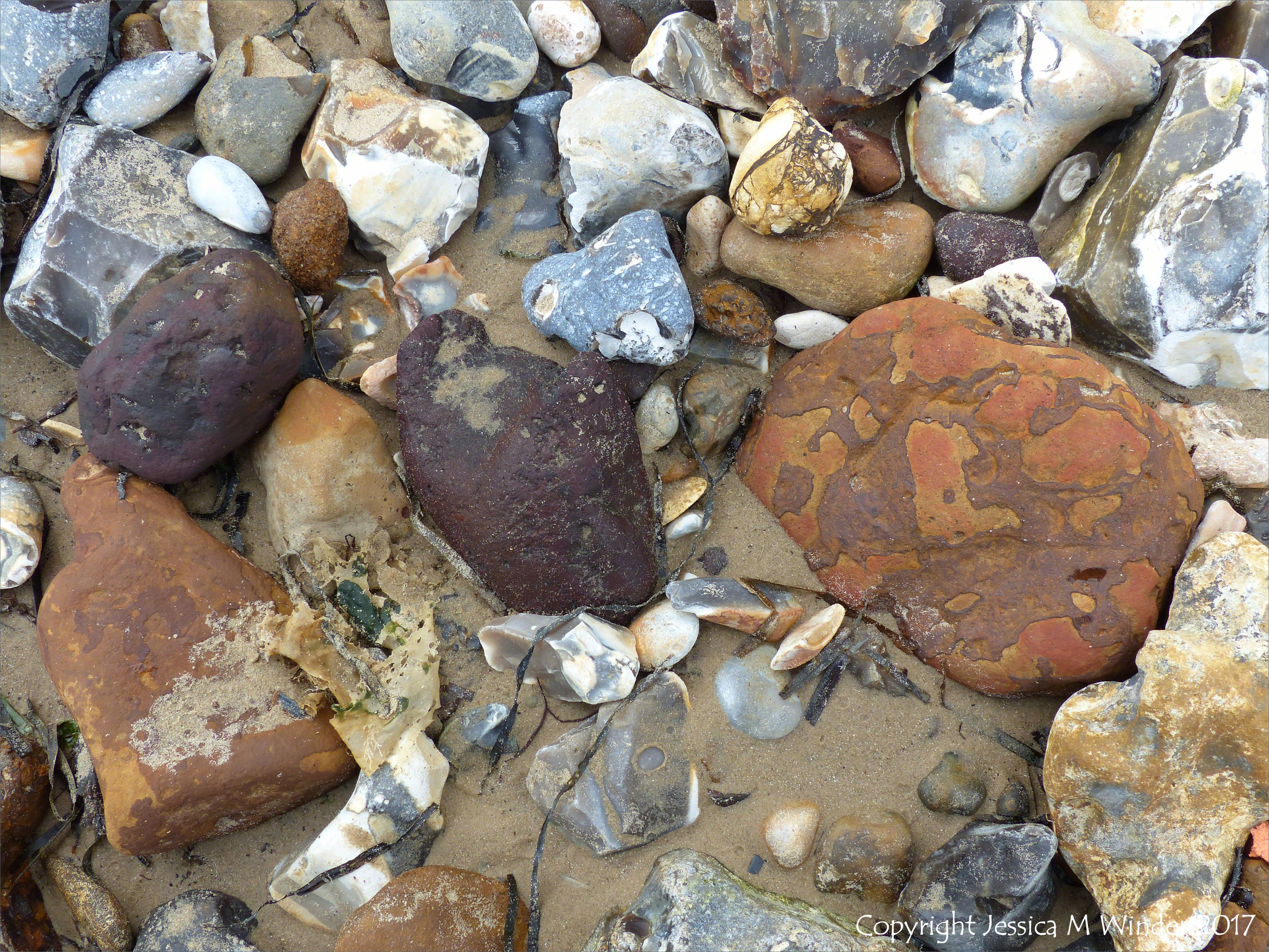 Flints & Ironstones Studland South 8 – Beach stones and pebbles including flints and ironstones derived from the chalk cliffs at South Beach, Studland, Dorset, England.