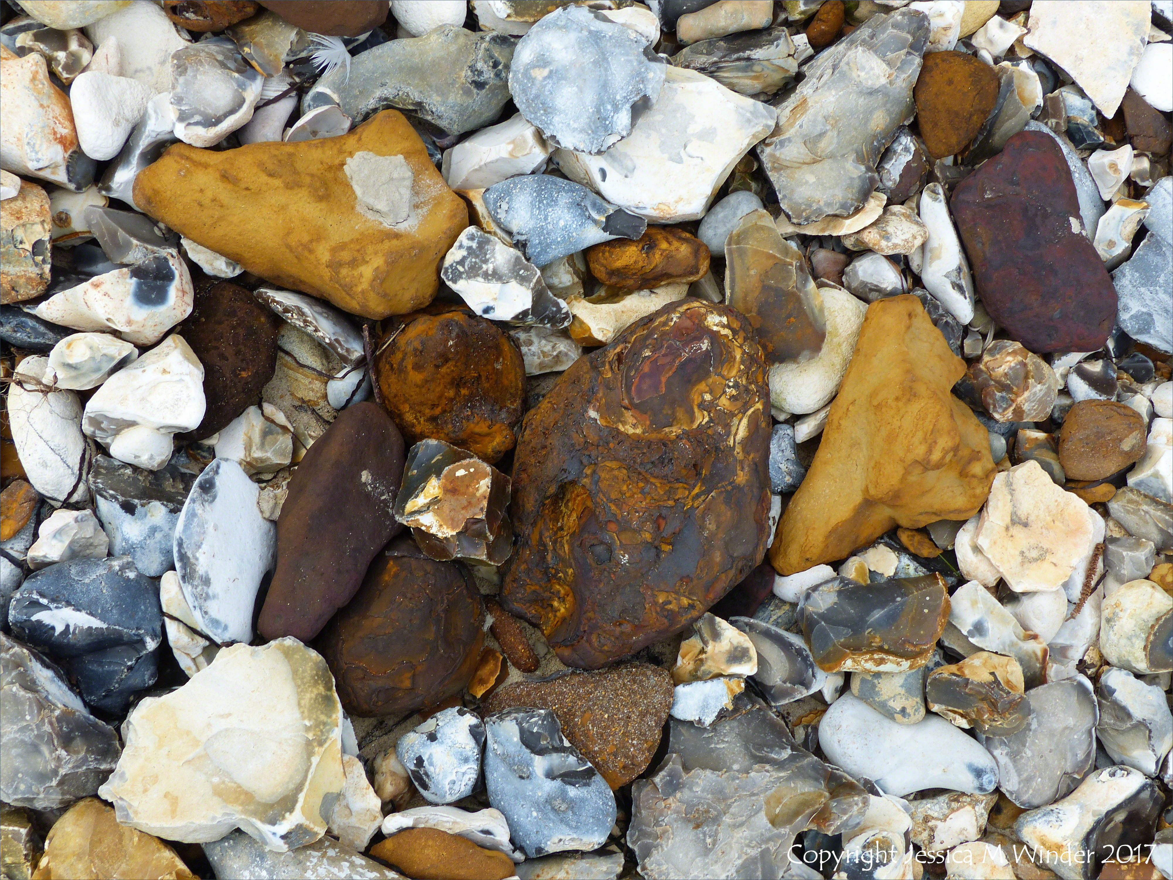 Flints & Ironstones Studland South 20 – Beach stones and pebbles including flints and ironstones derived from the chalk cliffs at South Beach, Studland, Dorset, England.