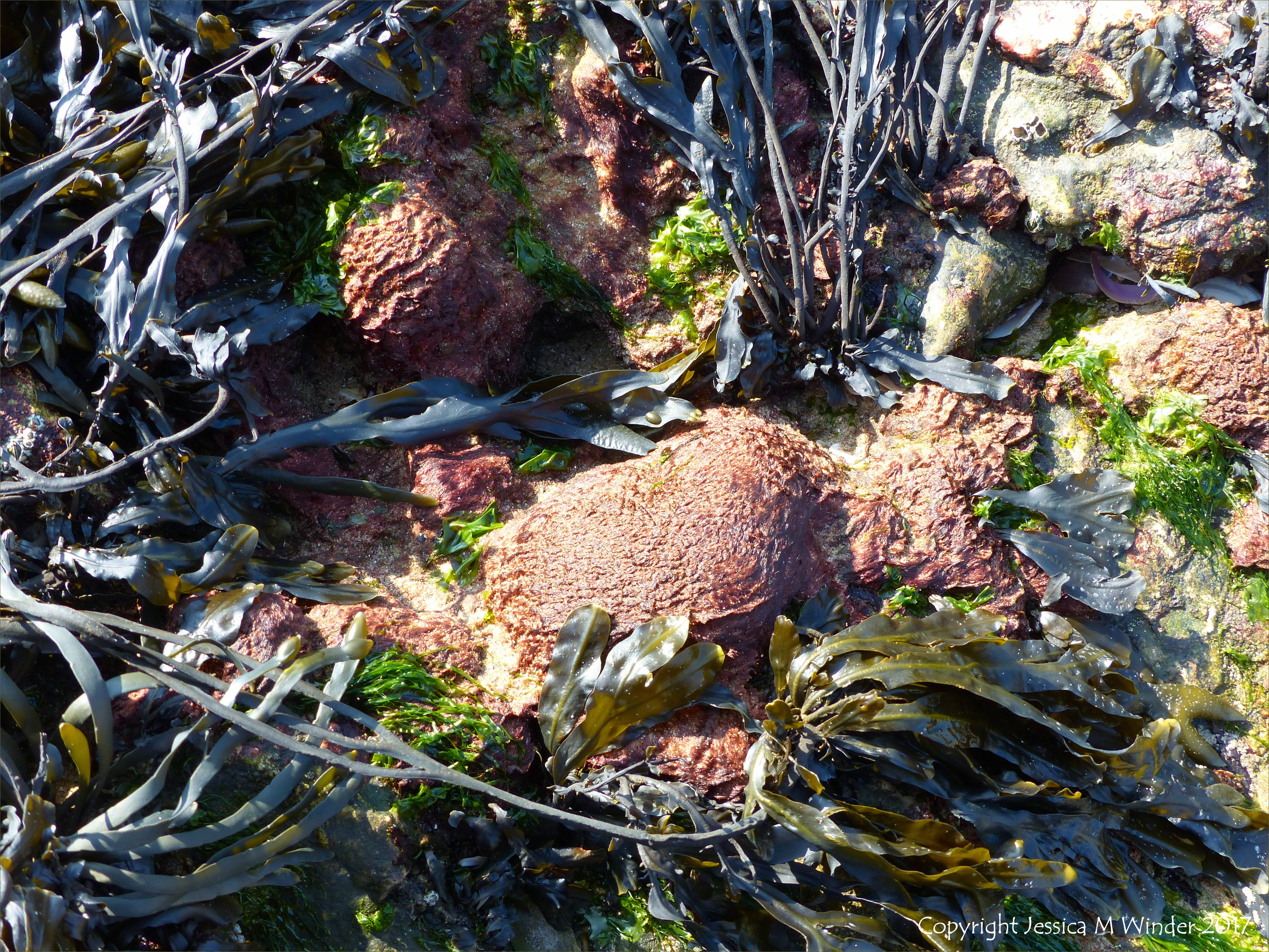 Hill End To Spaniard Rocks 120 – Sand Binder seaweed (Rhodothamniella floridula) at Spaniard Rocks, Rhossili, Gower, South Wales, 7th April 2017.