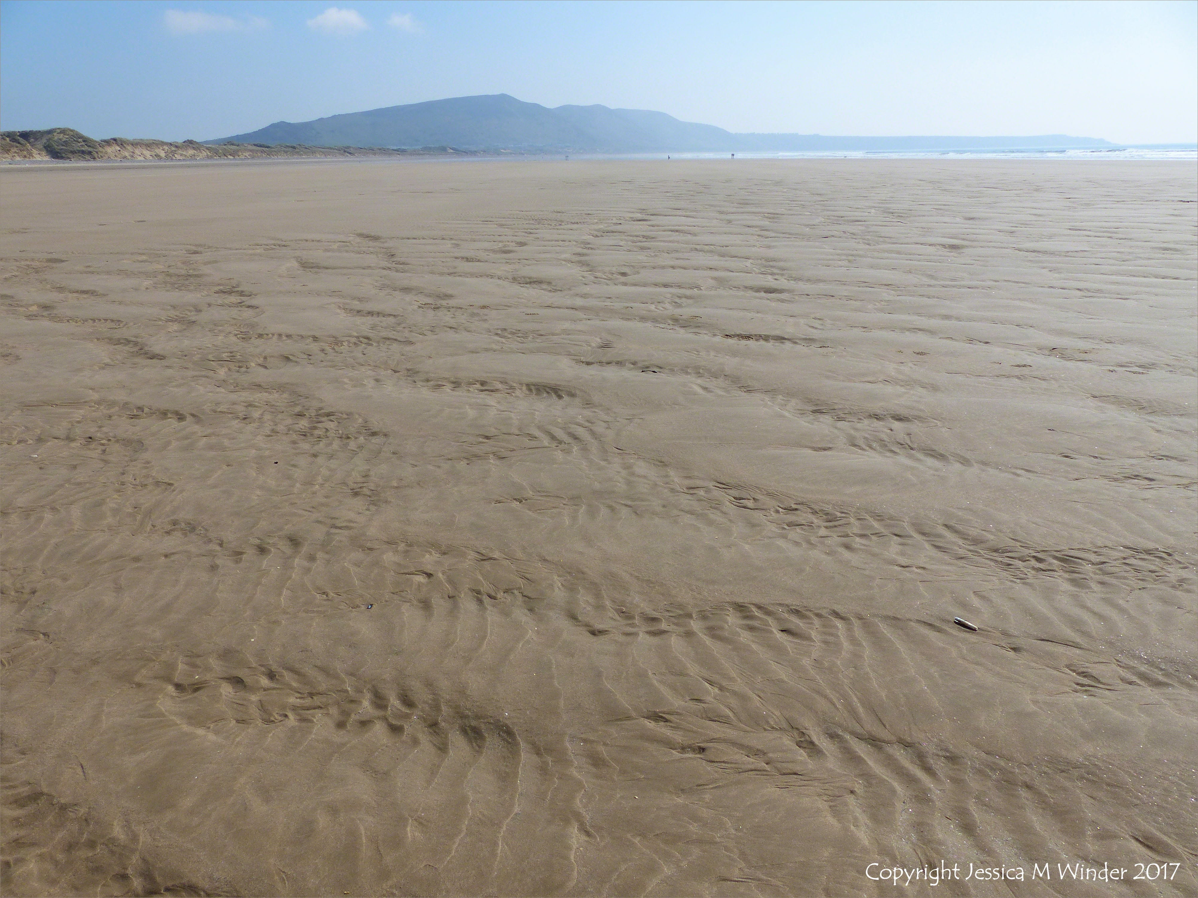 Hill End To Spaniard Rocks 125 – View looking south from Spaniard Rocks showing ripples in the sand at Rhossili Bay, Gower, South WAles, 7th April 2017.