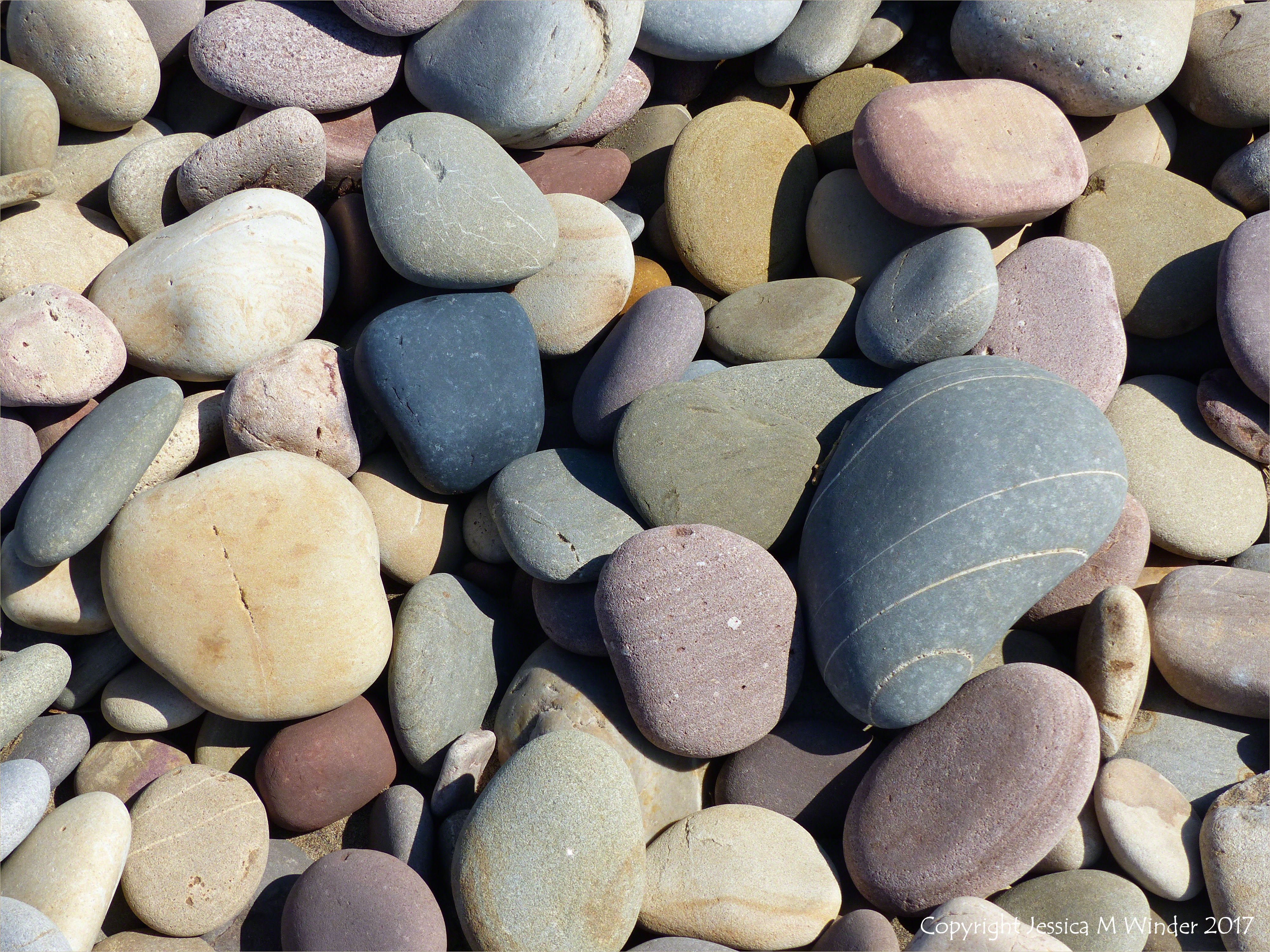 Hill End To Spaniard Rocks 148 – Pebbles on the seashore at Rhossili Bay in Gower, South Wales, 7th April 2017.