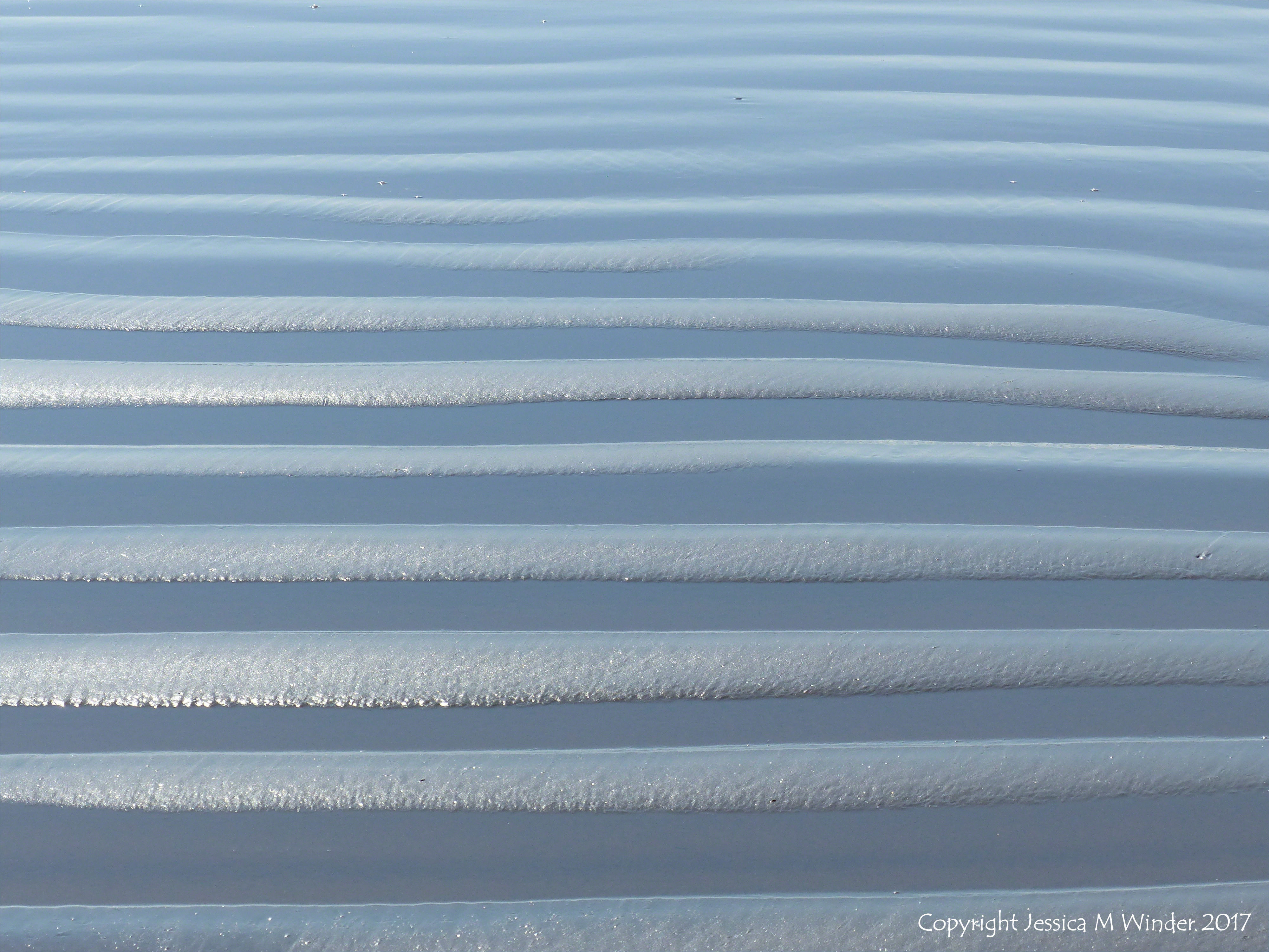 Hill End To Spaniard Rocks 159 – Wet sand ripples reflecting the blue sky at Rhossili Beach, Gower, South Wales, 7th April 2017.