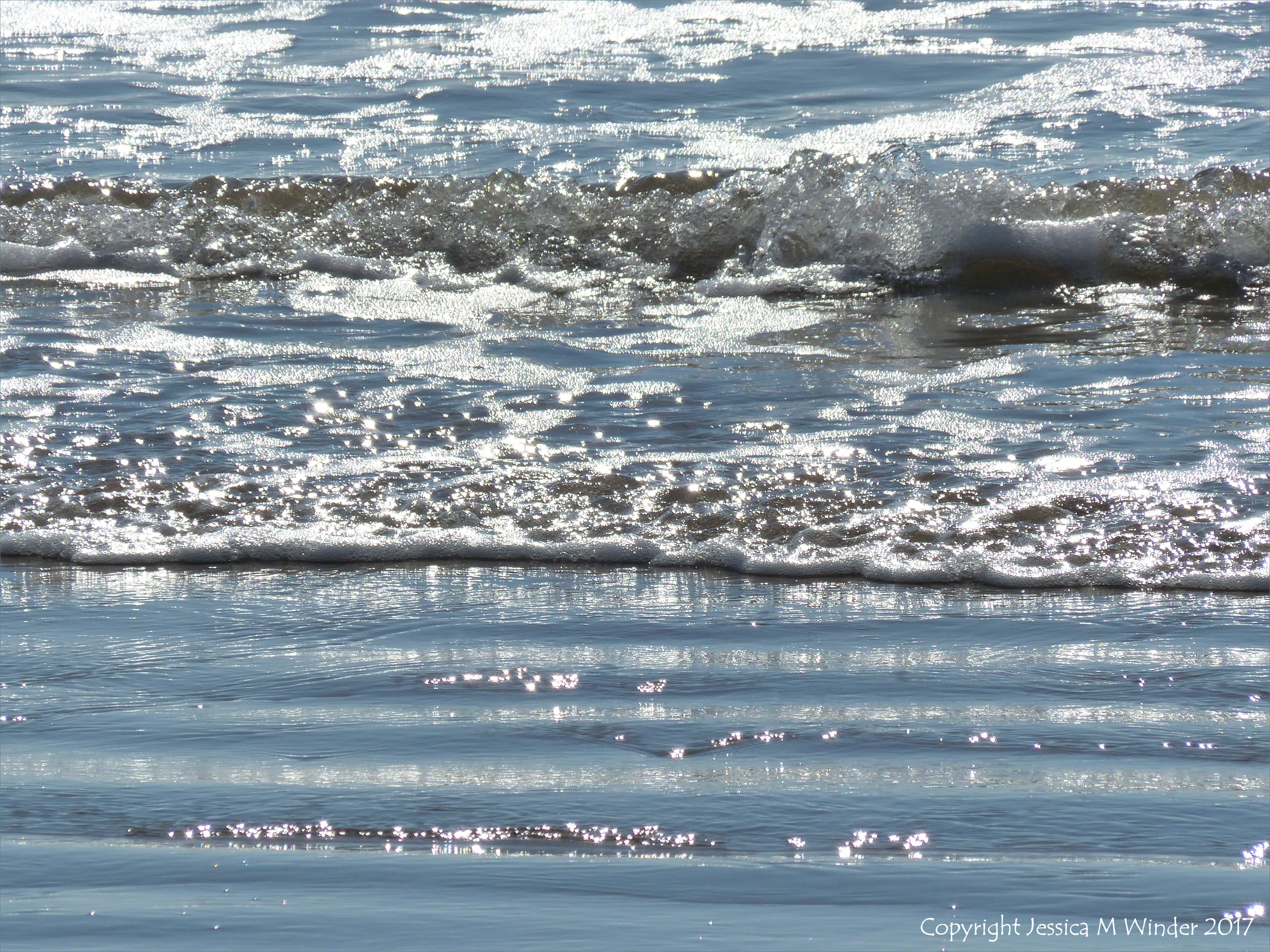 Hill End To Spaniard Rocks 167 – Waves and surf on the incoming tide sparkling in the sunshine at Rhossili Beach on the Gower peninsula, South Wales, 7th April 2017.