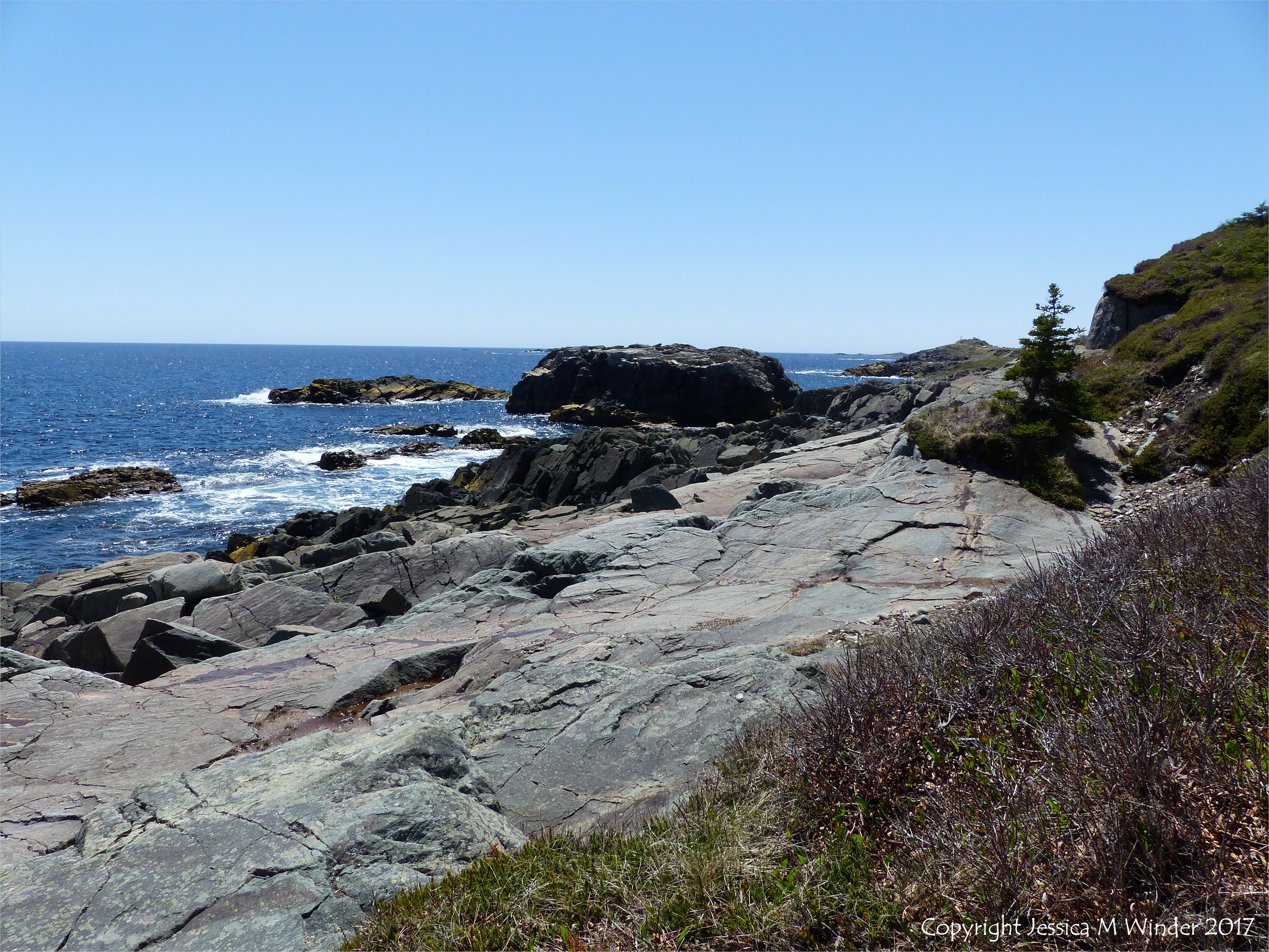 Pyroclastic Breccia Patterns 2 – The shoreline with rocks of pyroclastic breccia north of Louisbourg Lighthouse in Cape Breton, Nova Scotia, Canada, with angular fragments of rock in a matrix of volcanic ash.