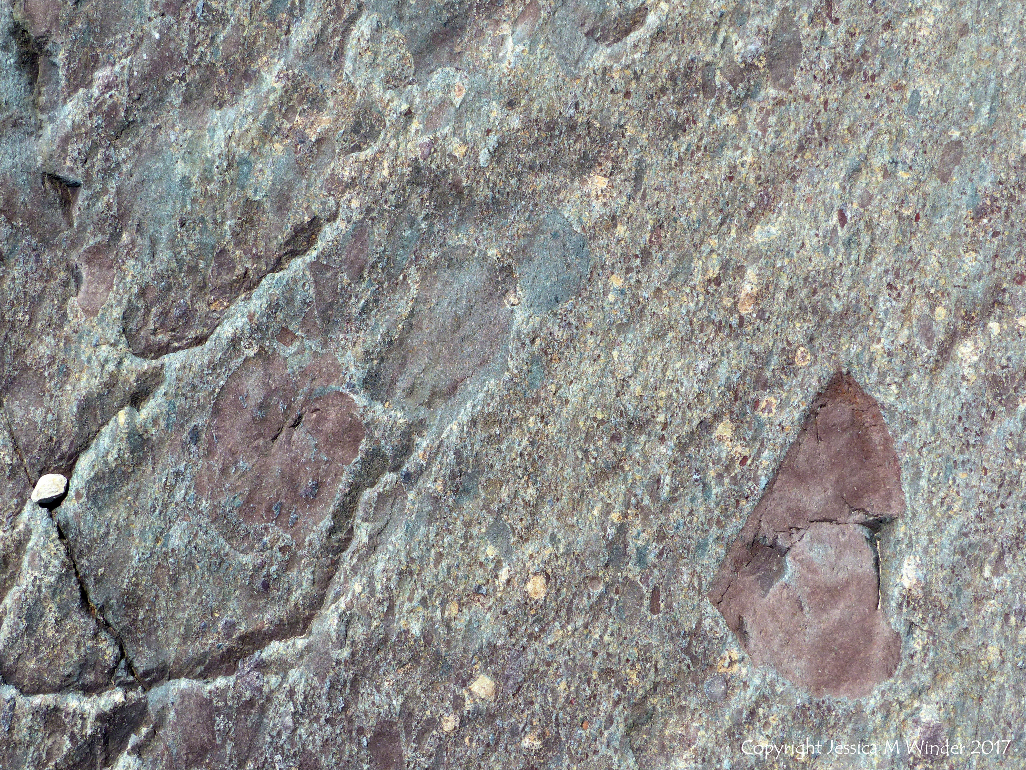 Pyroclastic Breccia Patterns 10 – Angular rock fragments embedded in a volcanic ash matrix from a pyroclastic flow in Cape Breton Island near Louisbourg Lighthouse, Nova Scotia, Canada.