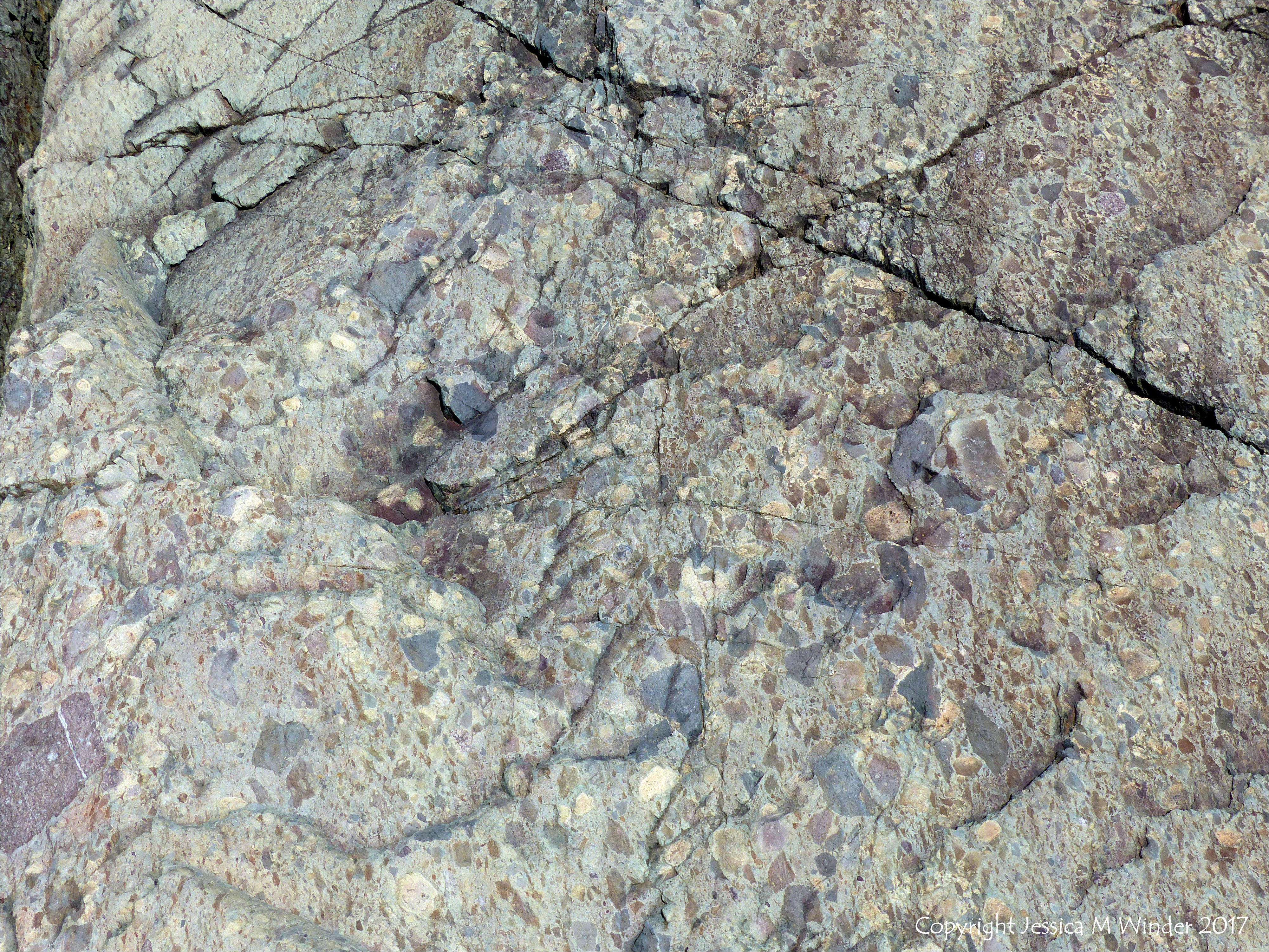 Pyroclastic Breccia Patterns 37 – Angular rock fragments embedded in a volcanic ash matrix from a pyroclastic flow in Cape Breton Island near Louisbourg Lighthouse, Nova Scotia, Canada.