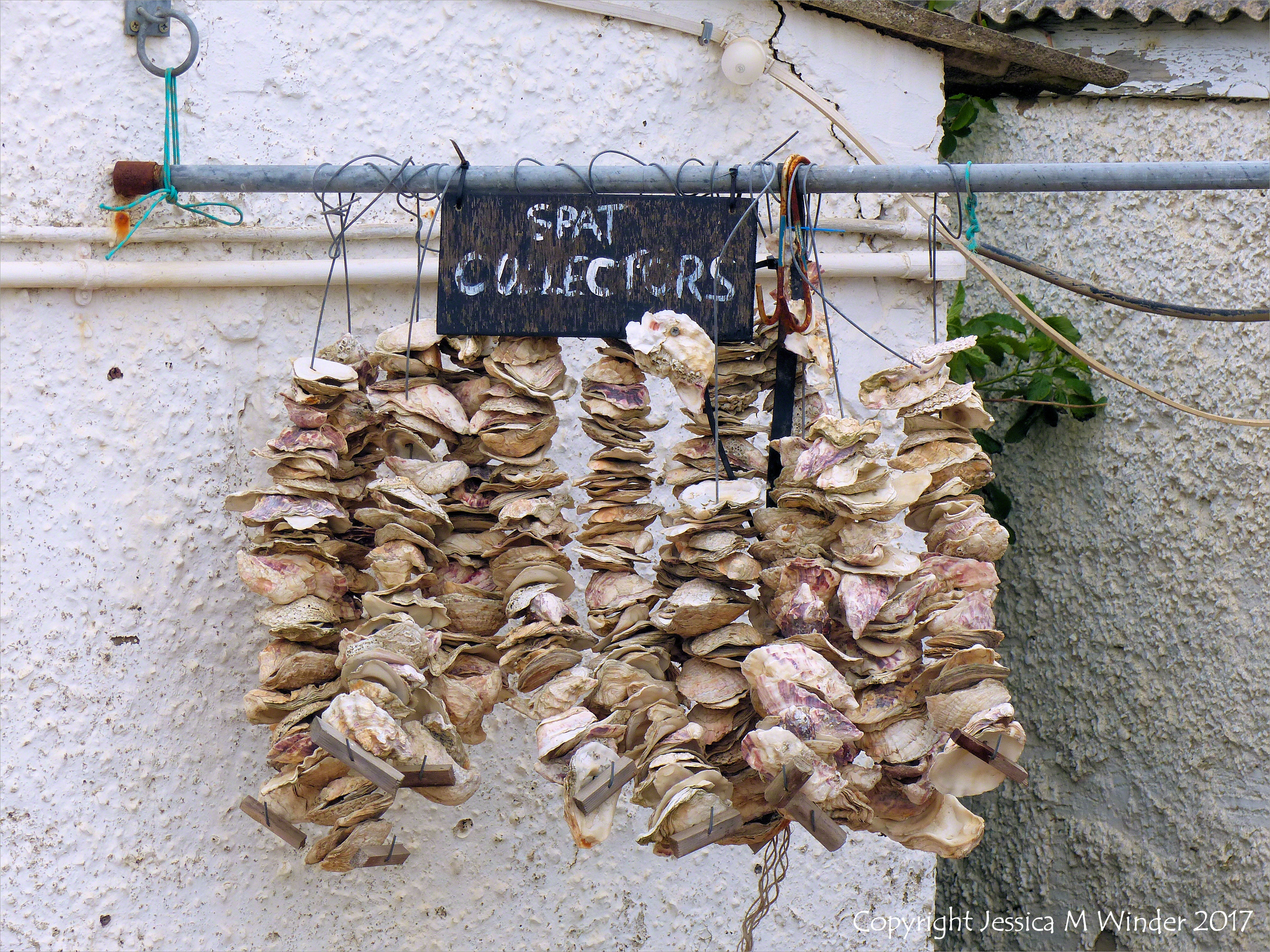 Modern Oyster Midden 9 – Strings of oyster shells for use as cultch to catch young oyster spat when suspended in the sea at Whitstable, Kent, England.