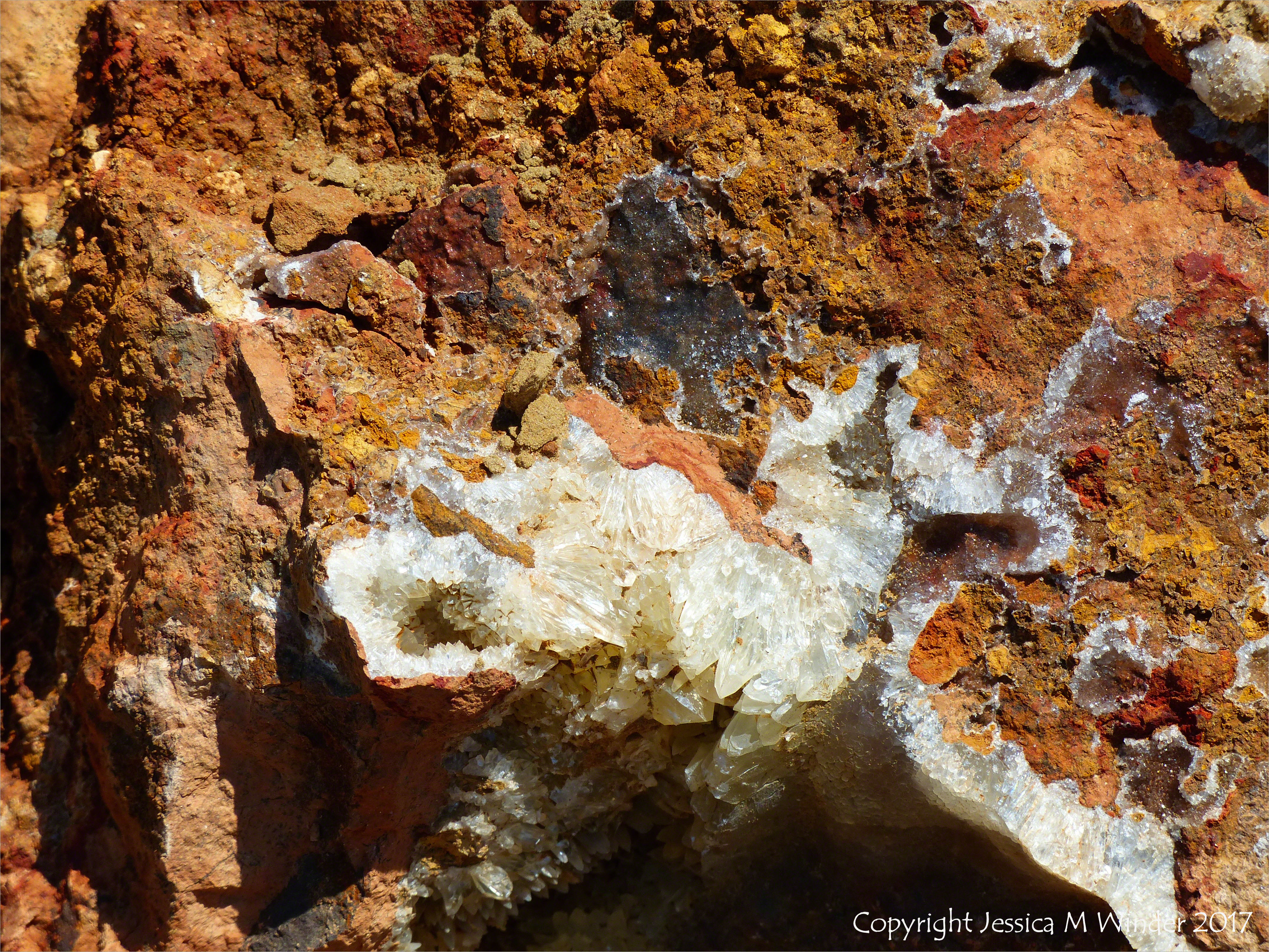 Seatown Rock Crystals 2 – Crystals within a beach boulder that has recently fallen from the top of the cliff at Seatown, Dorset, England, on the Jurassic Coast.