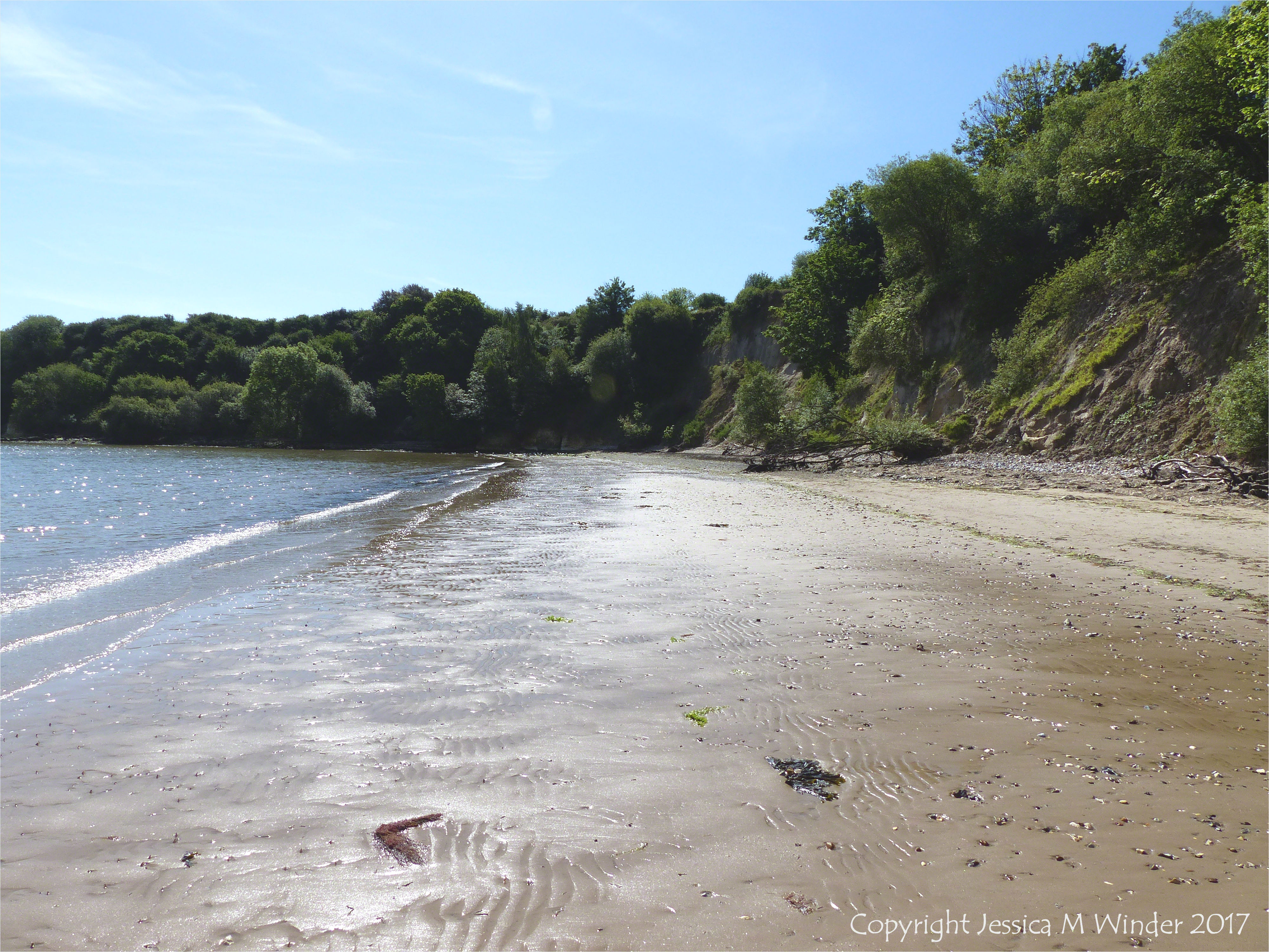 Worm Holes in Studland Chalk 1 – Context shot with view of South Beach in Studland Bay, Dorset, looking towards the corner where the worms burrow into chalk beneath the waterline.
