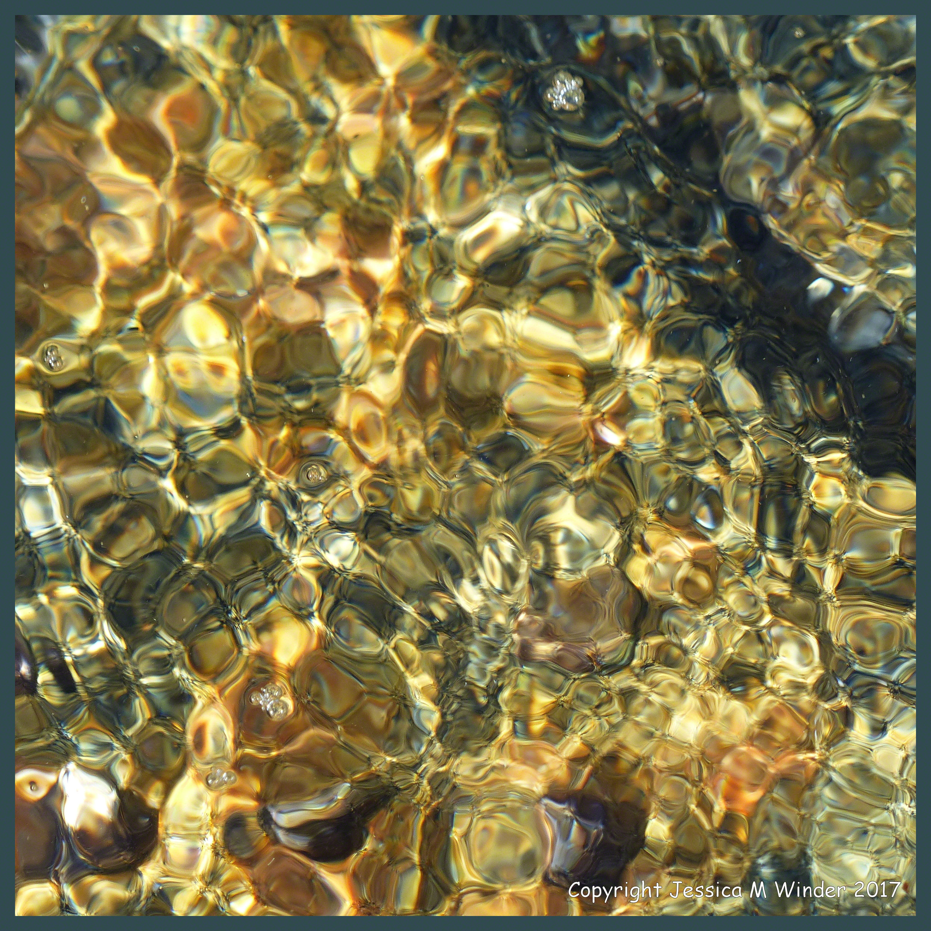 Rousse Ripples 14 – Ripples in lapping clear water on the seashore act as lenses to distort the image of coloured rocks below. Rousse Point, Guernsey, Channel Islands, October 2016.
