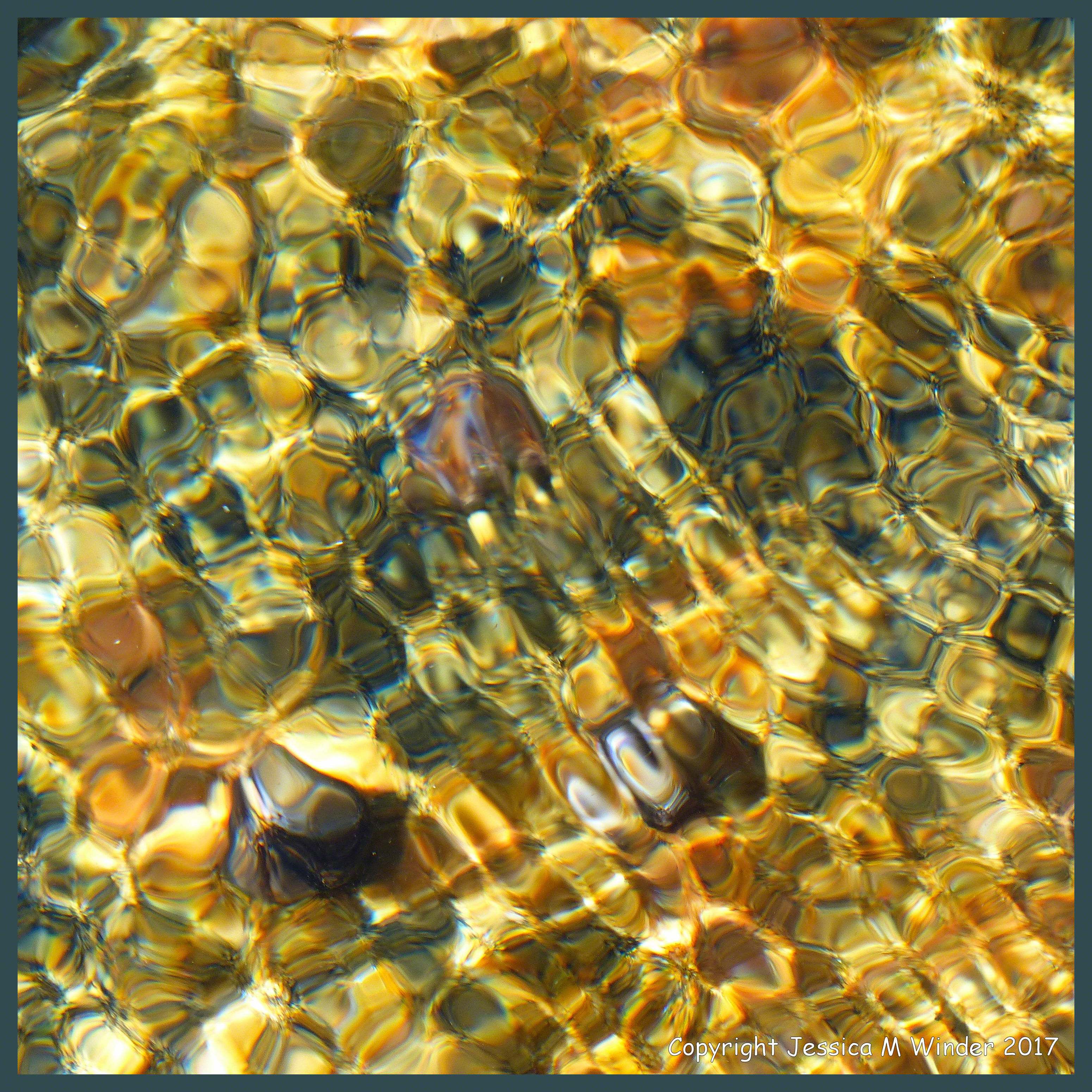 Rousse Ripples 15 – Ripples in lapping clear water on the seashore act as lenses to distort the image of coloured rocks below. Rousse Point, Guernsey, Channel Islands, October 2016.