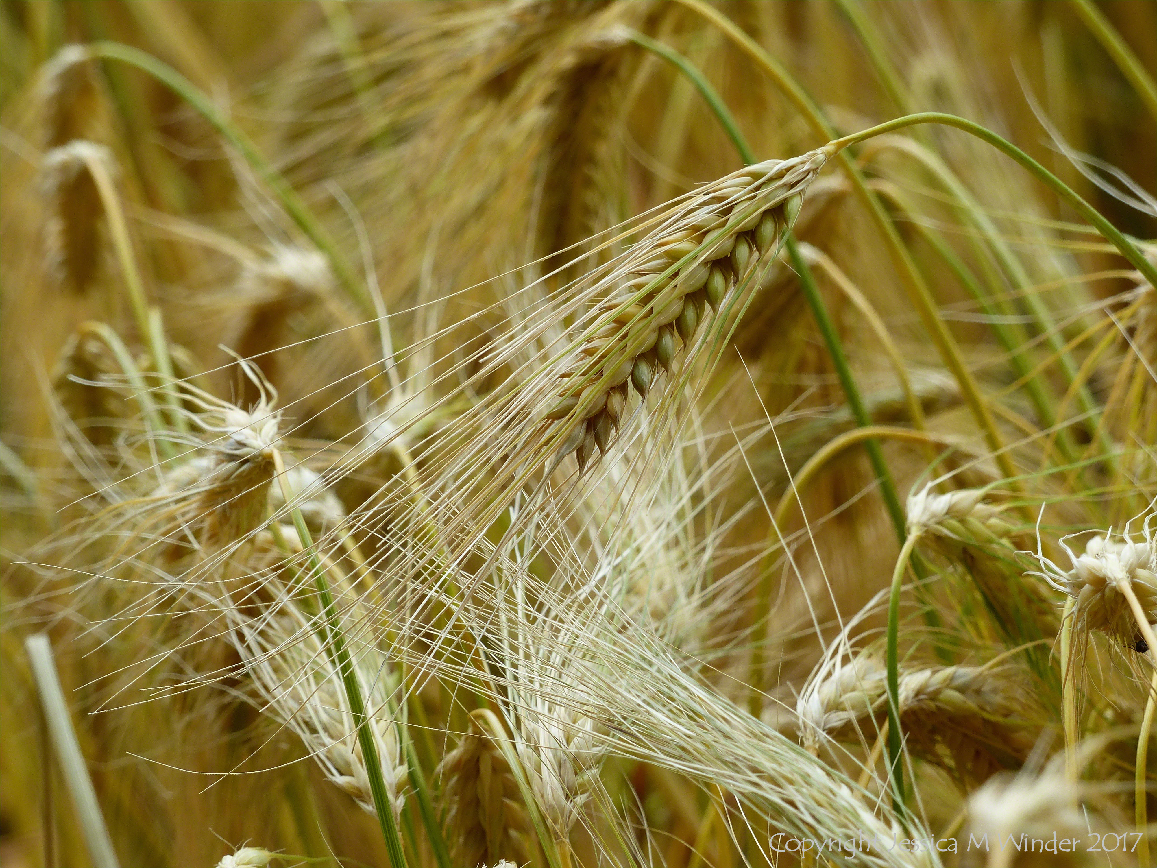 Ripening Barley CD 4 – Ripening barley in a Dorset field at Charlton Down 1st July 2017. The blond whiskers of the seed spikelets on the drooping heads of barley seem to create acres of pale gold cobwebs to delight the eye.