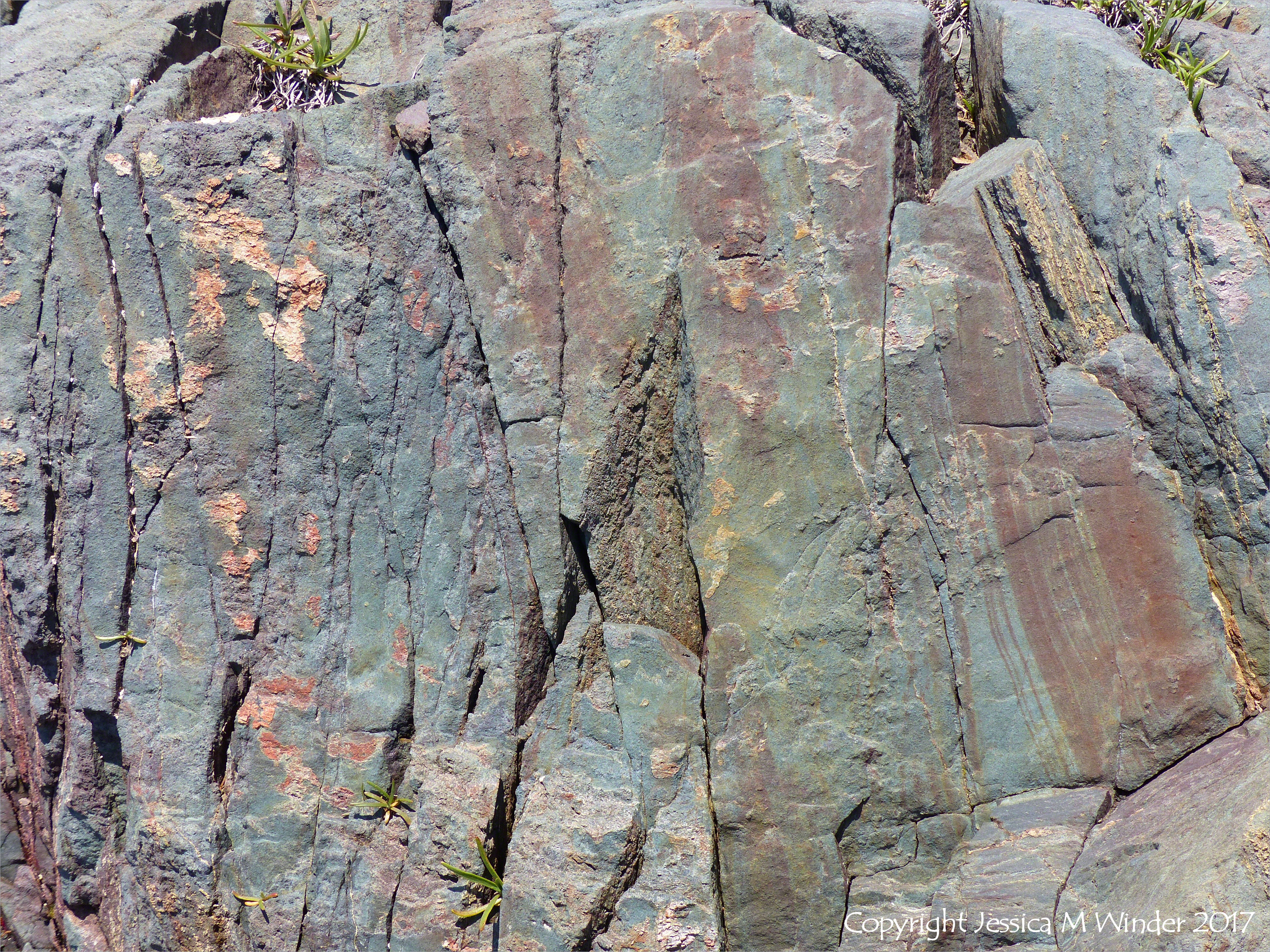 Volcanic Tuff Louisbourg Lighthouse 35 – Rock texture of solidified lava that has intruded into tuff at Louisbourg Lighthouse on Cape Breton Island, Nova Scotia, Canada.