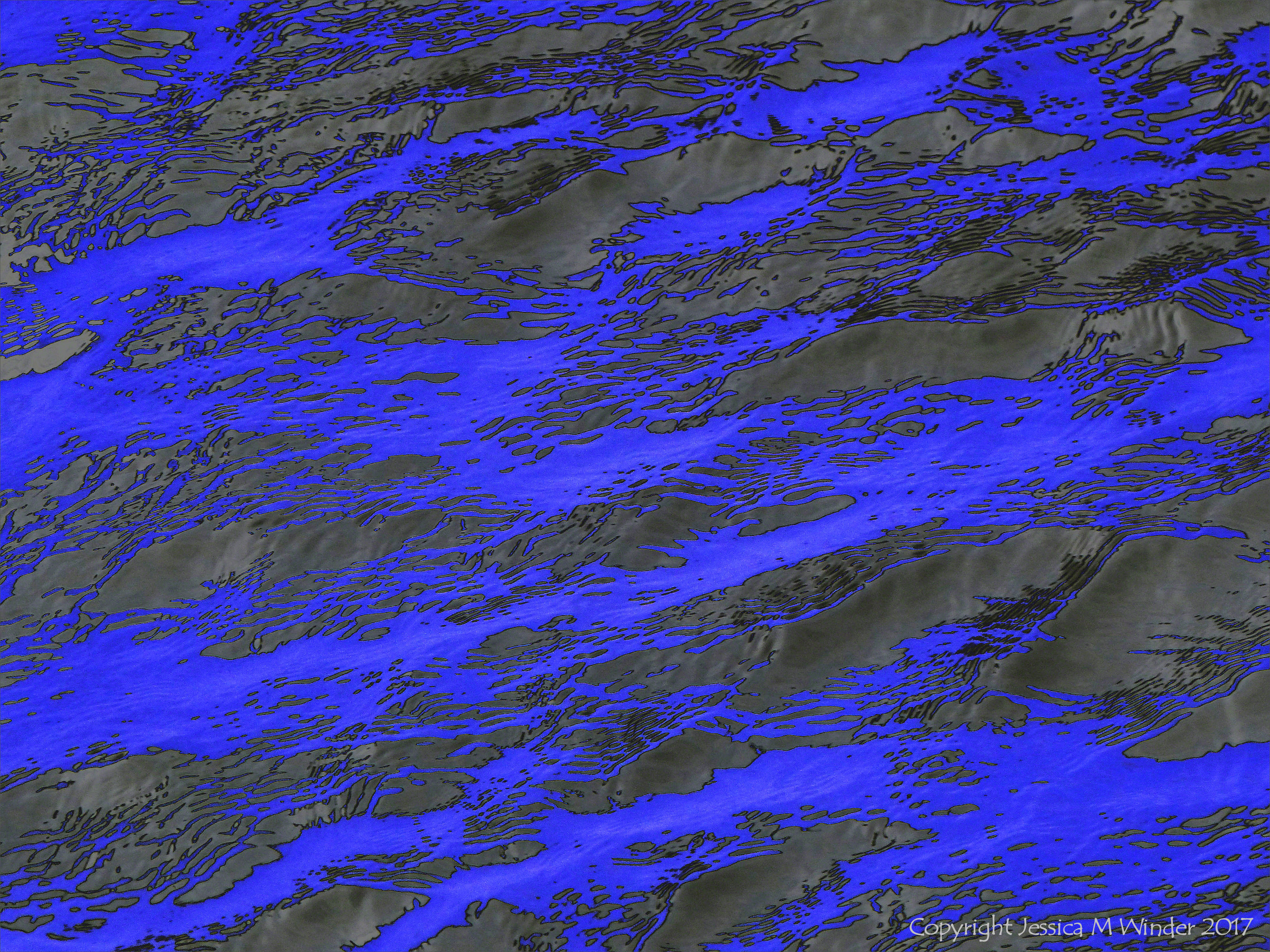Thames Dock 1 – Rippled river water surface pattern and texture in an abstract artistic image derived by digitally altering the colours of a photograph so that the blue represents the reflected light.