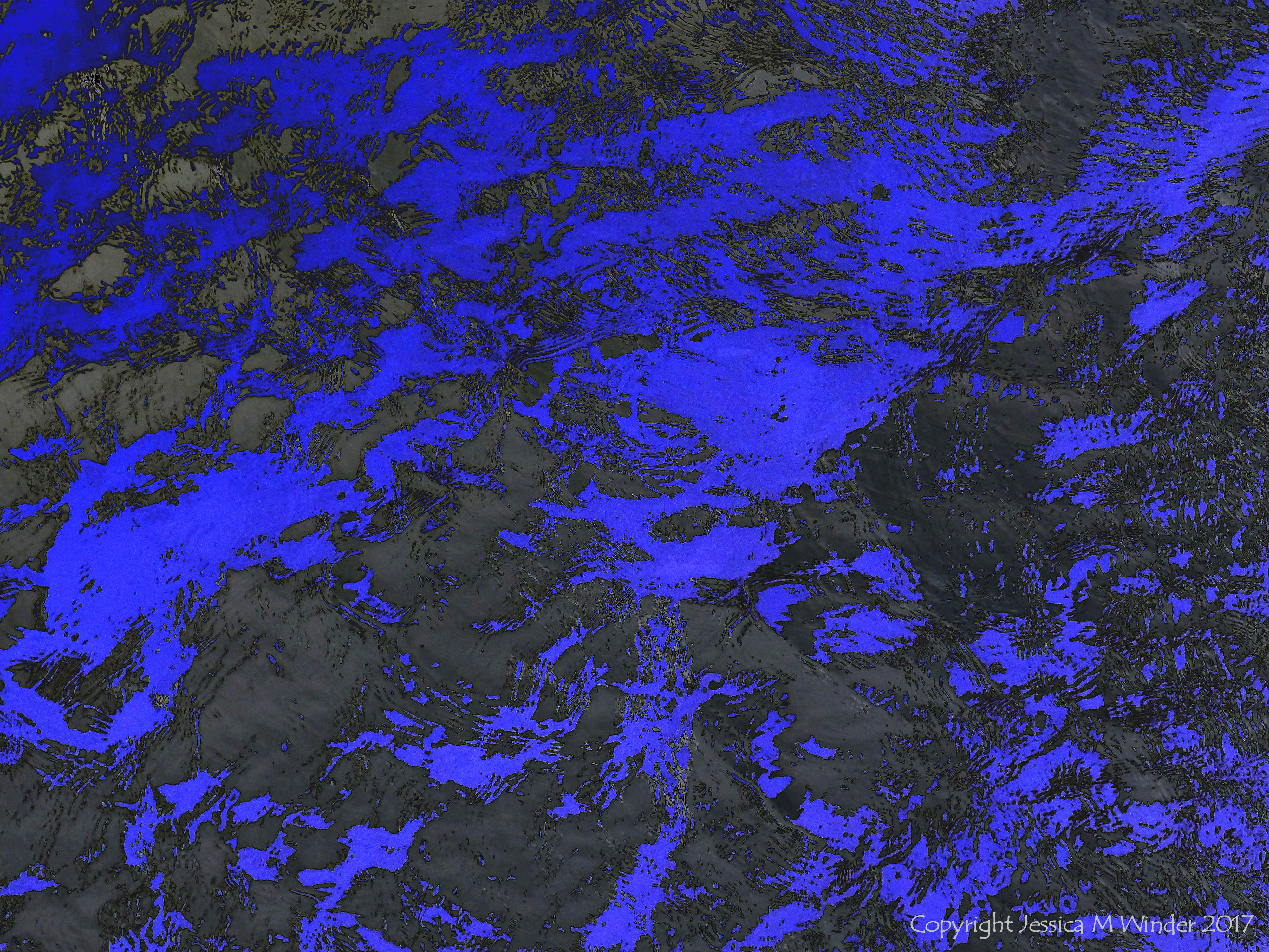 Thames Dock 10 – Rippled river water surface pattern and texture in an abstract artistic image derived by digitally altering the colours of a photograph so that the blue represents the reflected light.
