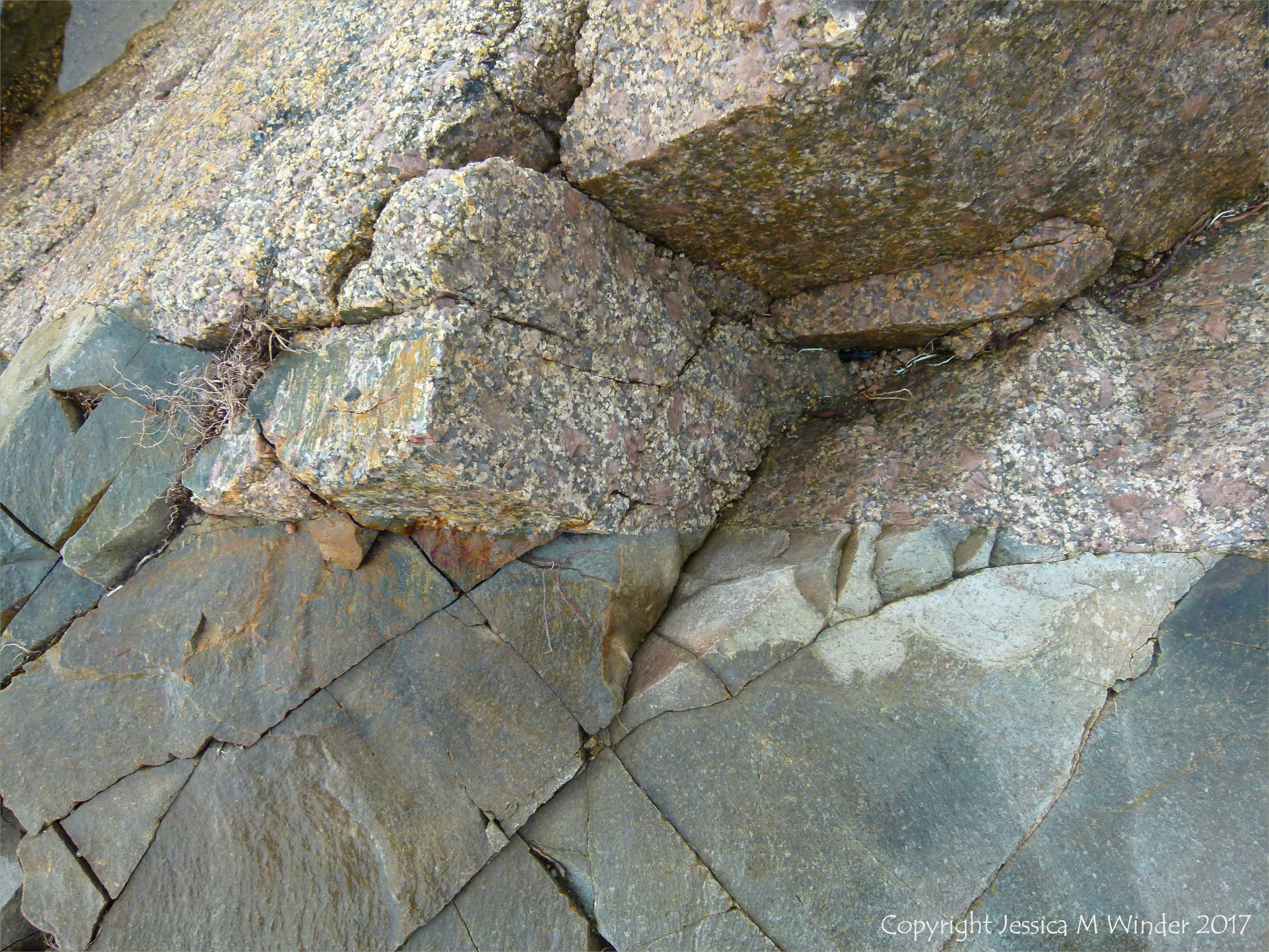Rock Texture & Pattern at Dogs Bay 3 – The junction between granite and intrusive dike material at Dogs Bay in Connemara, Ireland.