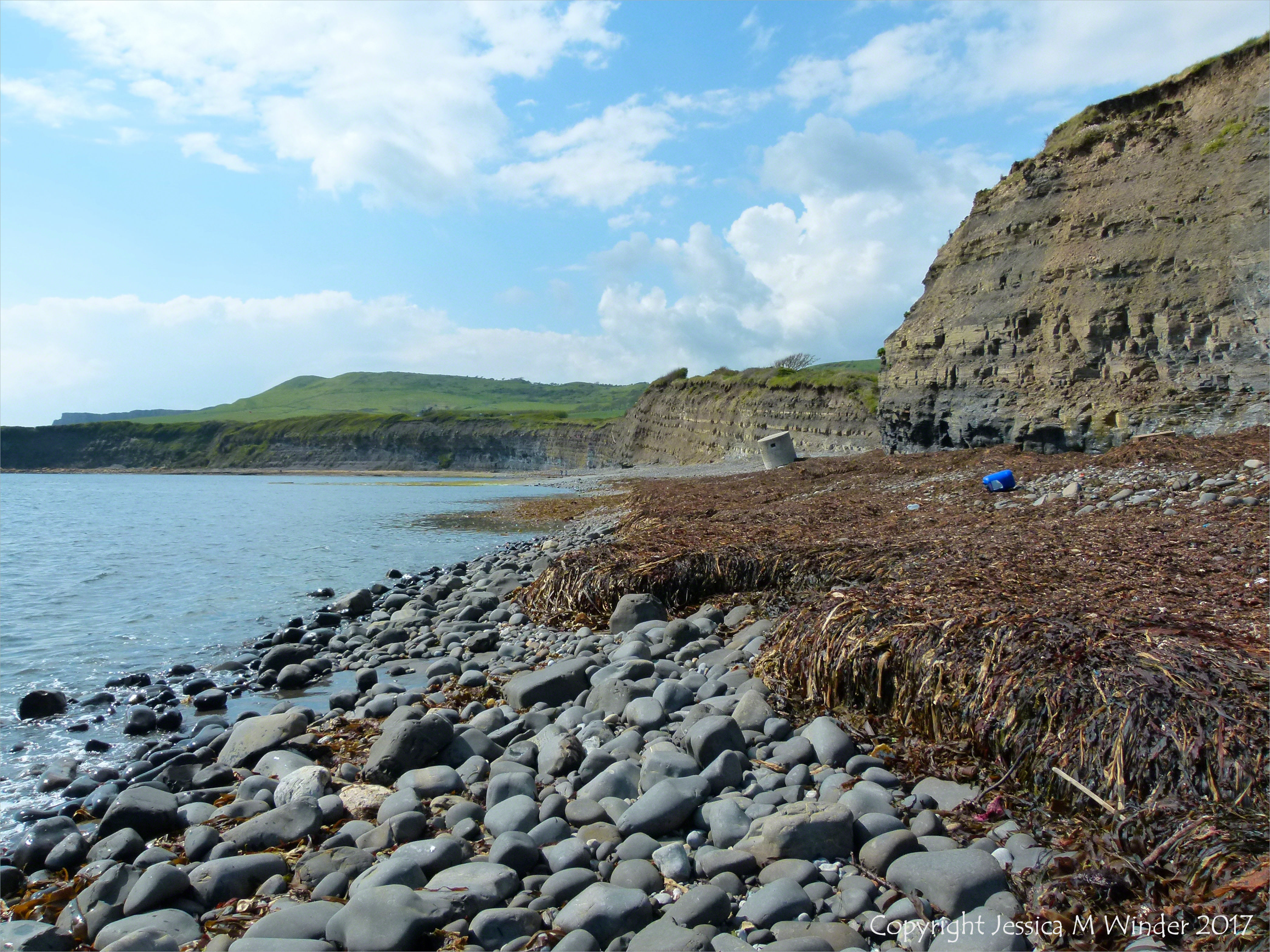 Seaweed Strands 1 – Context shot for seaweeds on the strandline at Kimmeridge bay, Dorset, England, on the World Heritage Jurassic Coast.