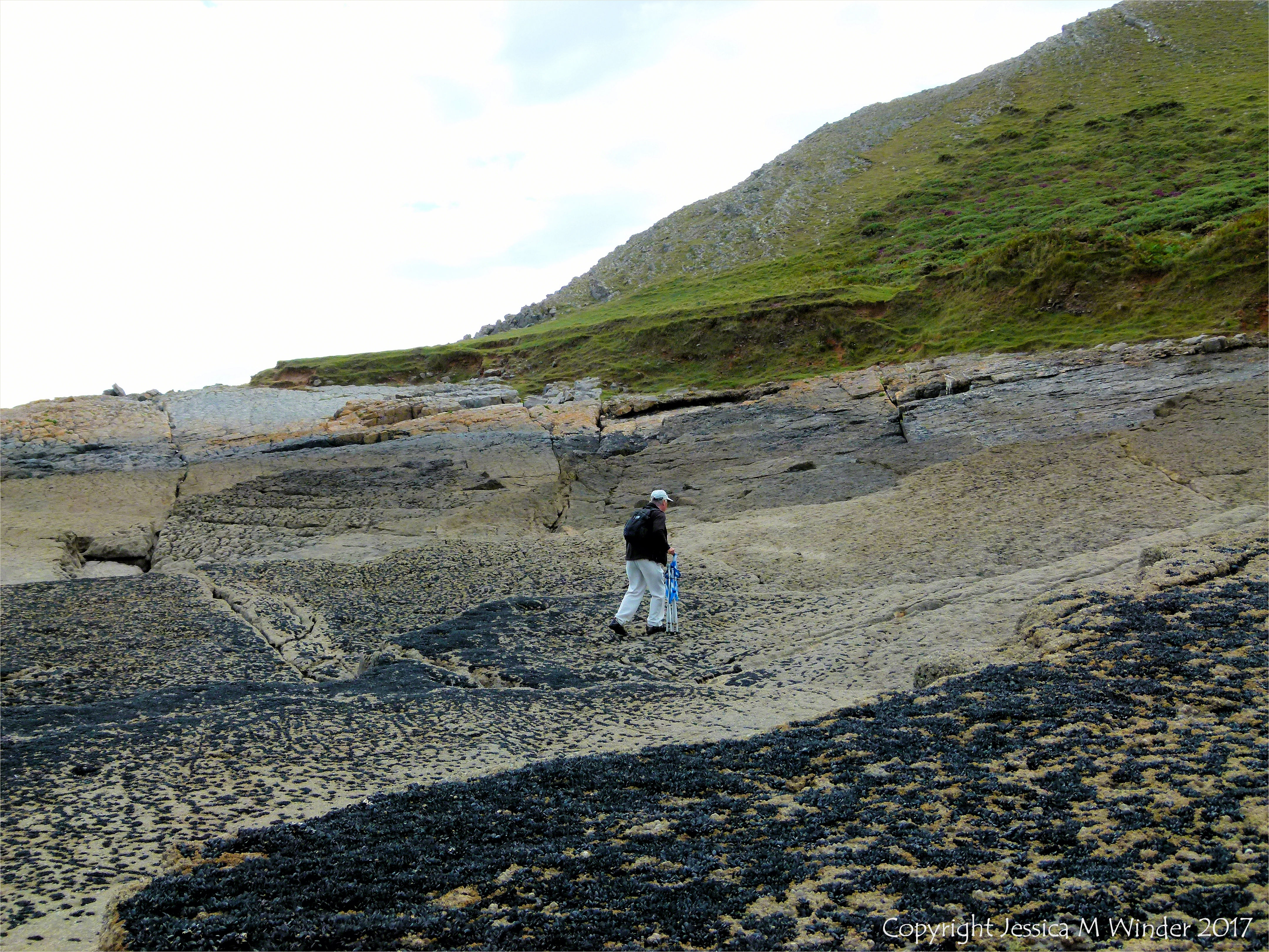 On the Rocks at Fall Bay 7 – Mussels, limpets, and barnacles growing on limestone, high in the intertidal zone, at Fall Bay, Gower, South Wales.