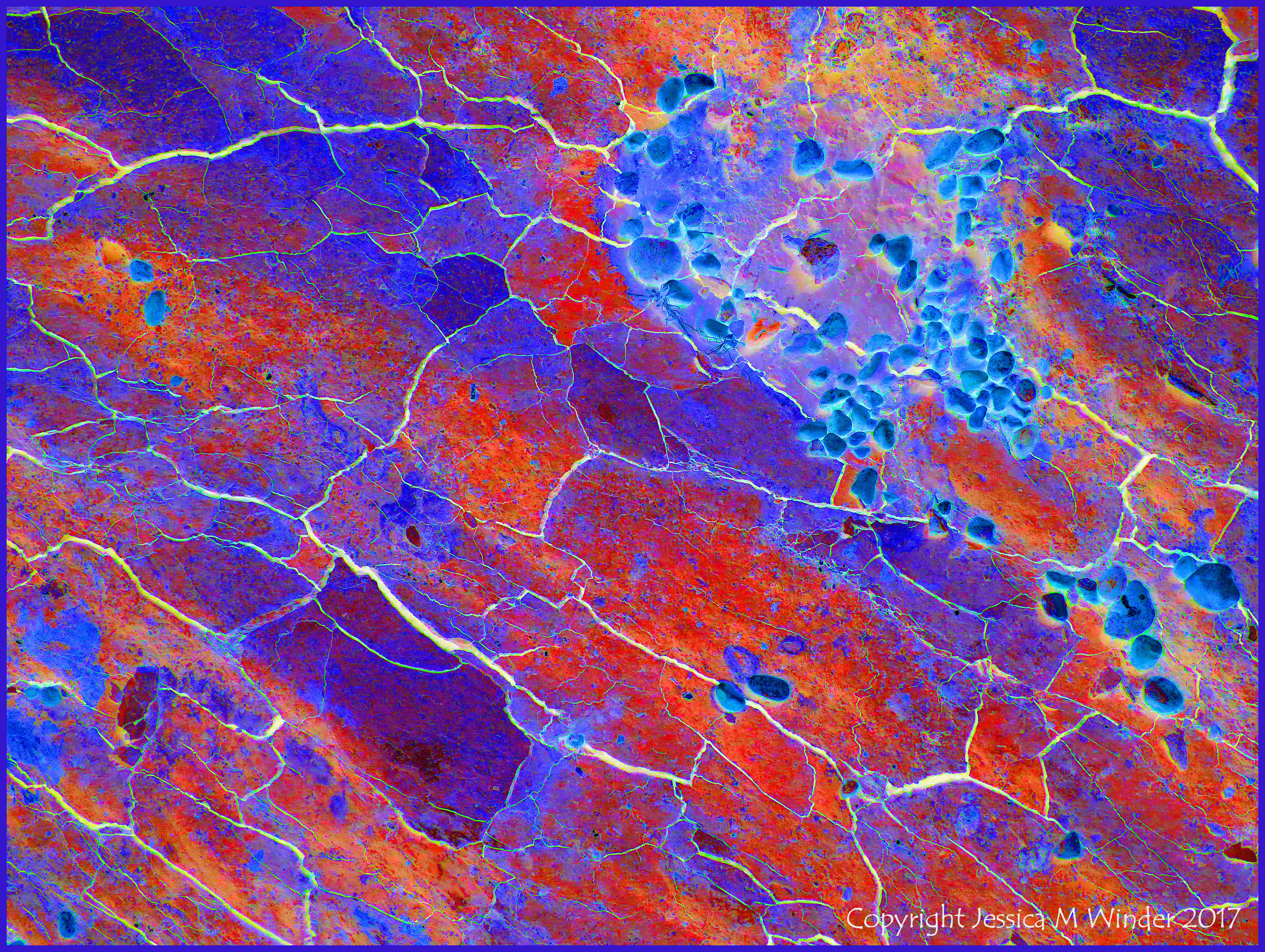 Fractured 1 – Abstract image based on natural fracture patterns in soft Jurassic rocks at Seatown in Dorset, England, a digitally re-coloured photograph.