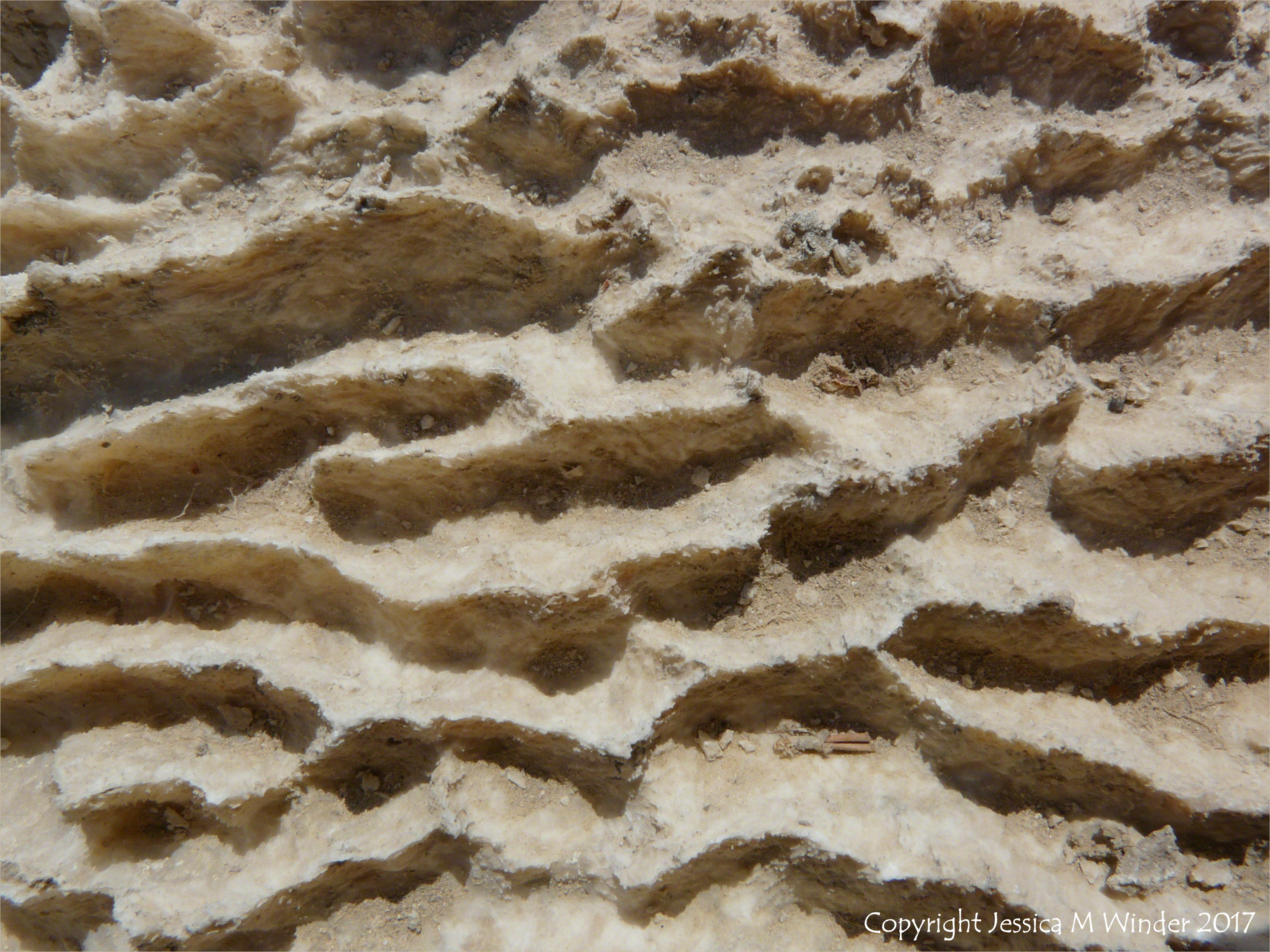 Eroded Gypsum at Knossos 5 – Ridge and furrow texture and pattern on the eroded surface of gypsum building blocks in the ruins of the ancient Minoan palace at Knossos on the island of Crete. The erosion pattern is like rillenkarren in karst topography.