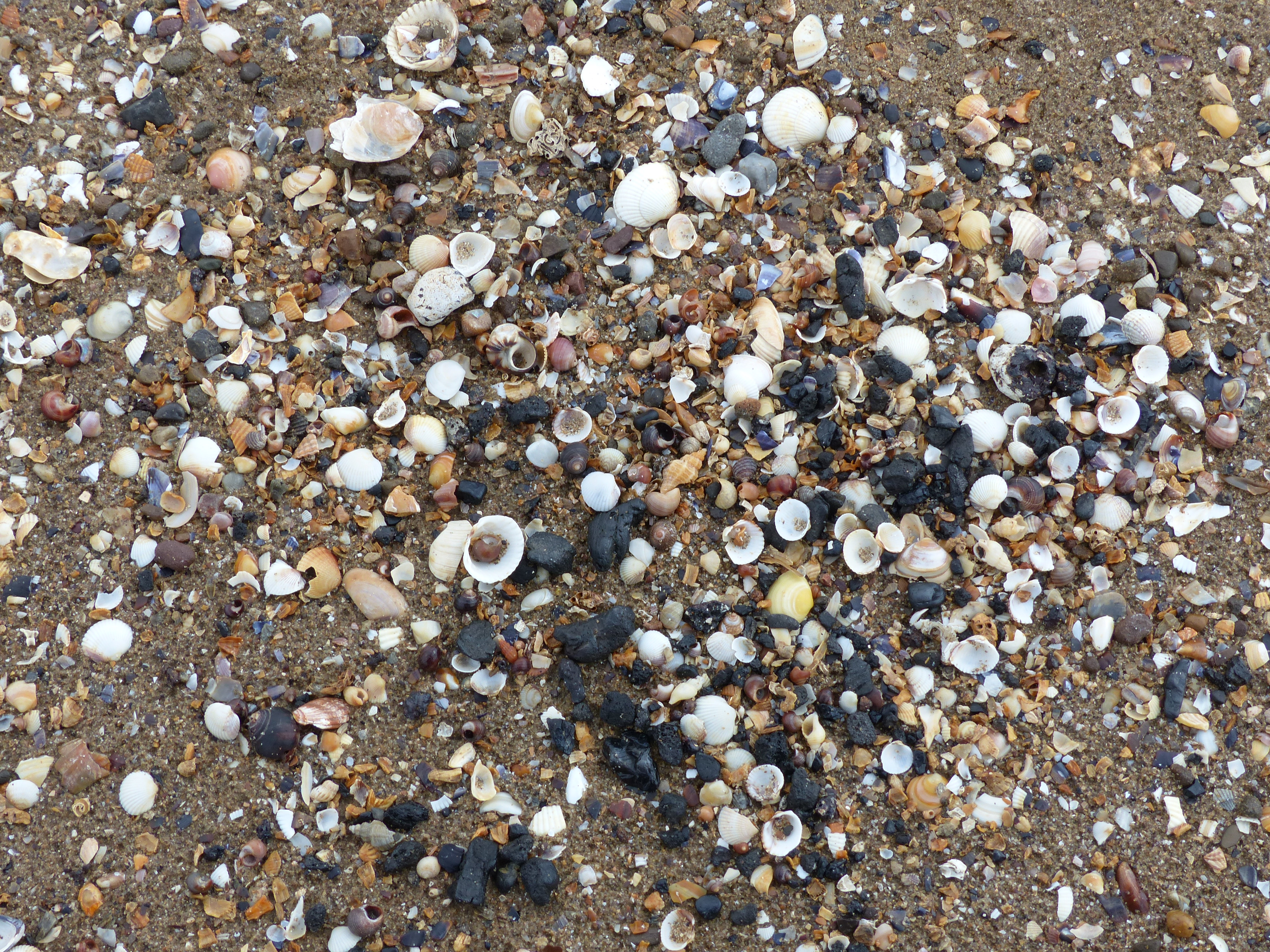 20 – Millions of seashells had washed ashore at Swansea Bay, South Wales, in August 2017. Most of them were tiny immature cockle shells but there were many other species too, interspersed with pieces of coal and clinker, and burial-blackened periwinkle shells.