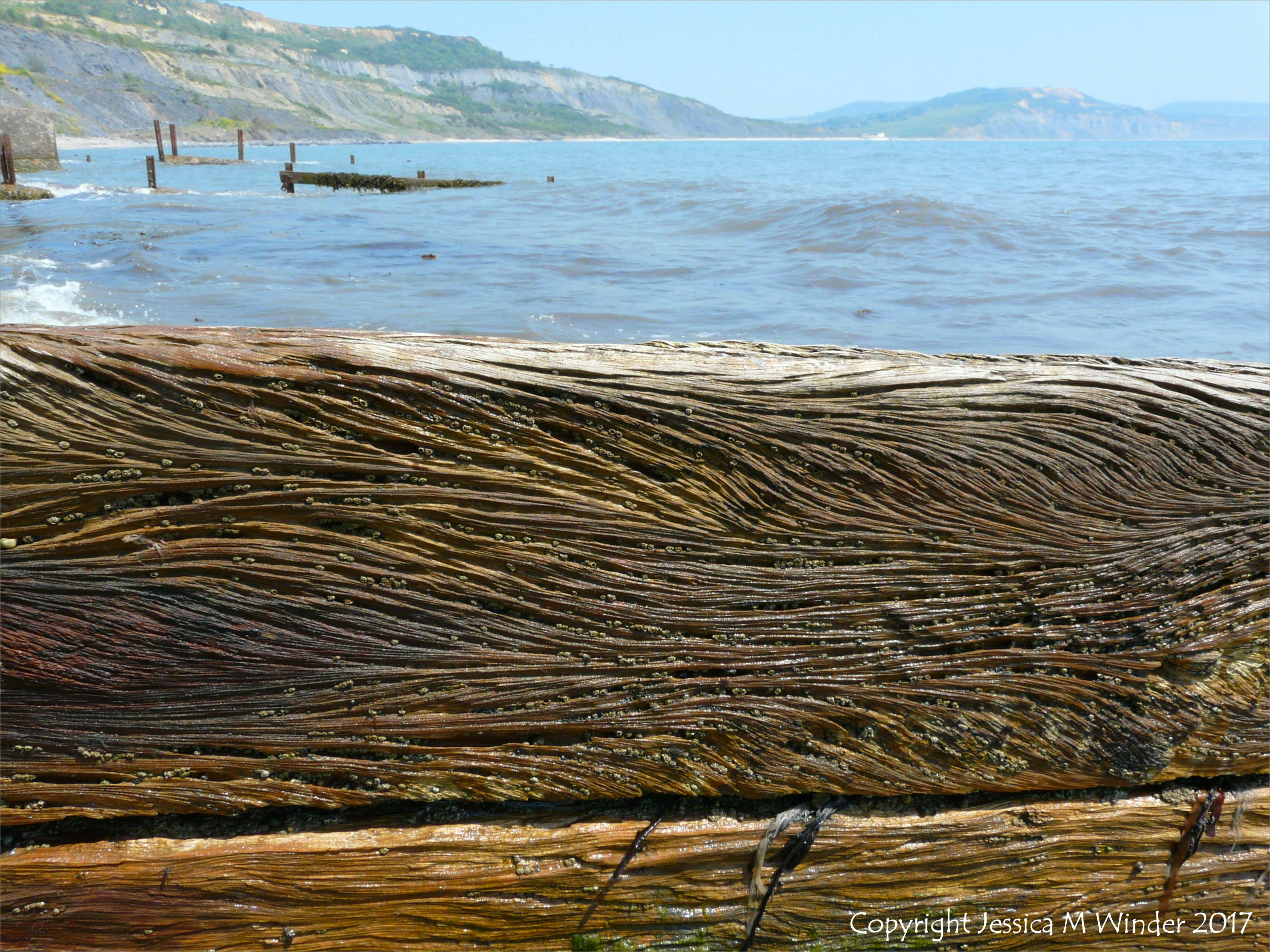 Woodgrain On OCC Breakwaters 13 – Curvilinear woodgrain patterns in old wooden breakwaters ( now demolished) at Church Cliff, Lyme Regis, Dorset, UK, June 2010.