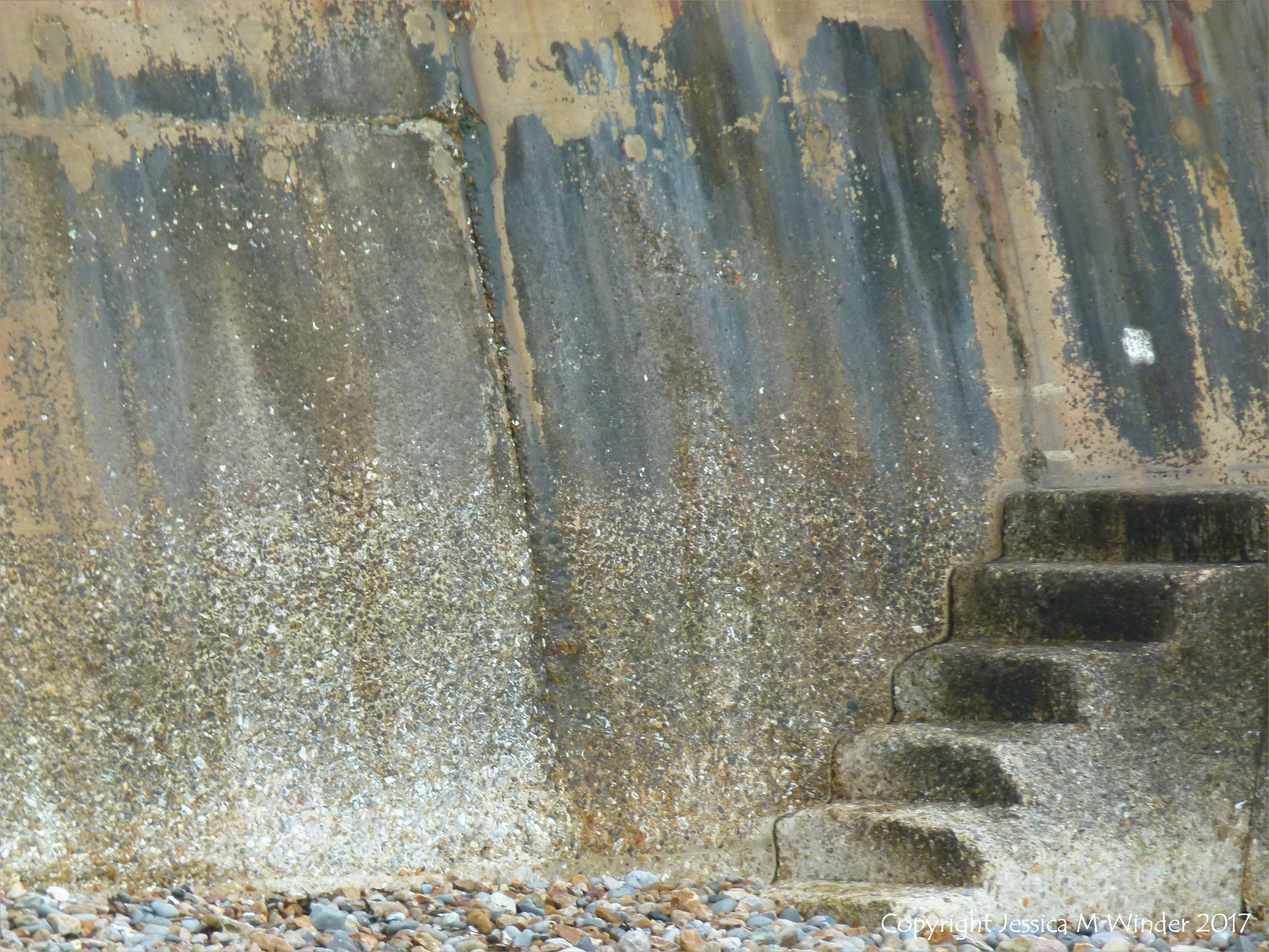 Old Sea Wall Church Cliff 1 – Sea defence of a concrete sea wall and steps for climbing over the breakwaters as it looked in February 2011 at Church Cliff in Lyme Regis, Dorset, on the World Heritage Site of the Jurassic Coast.
