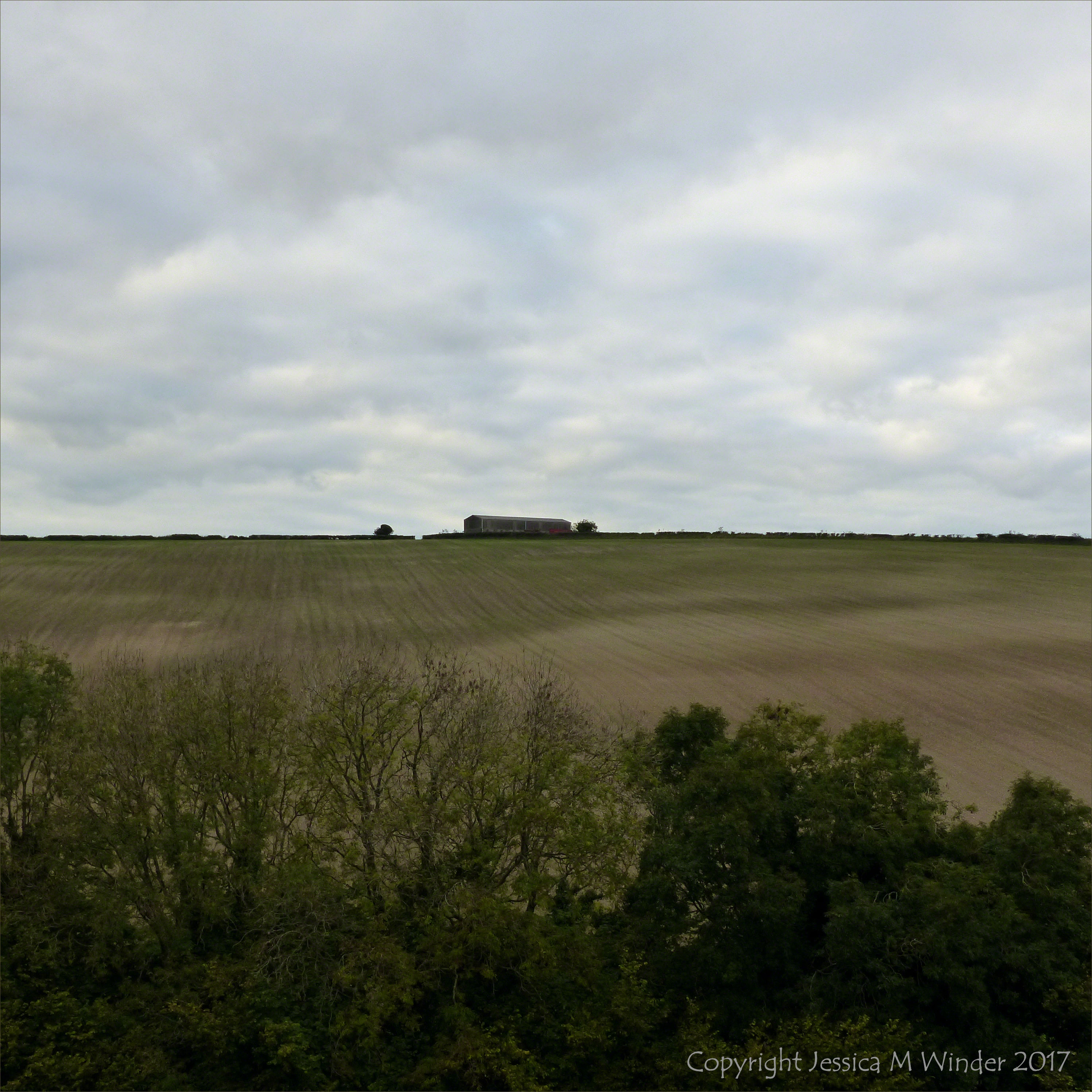 Dismal Autumn Day In Charlton Down 12 – Farming landscape in the Dorset countryside with arable field, barn, and hedgerow on a dull autumn day with overcast skies at Charlton Down in Dorset, UK, 9 October 2017