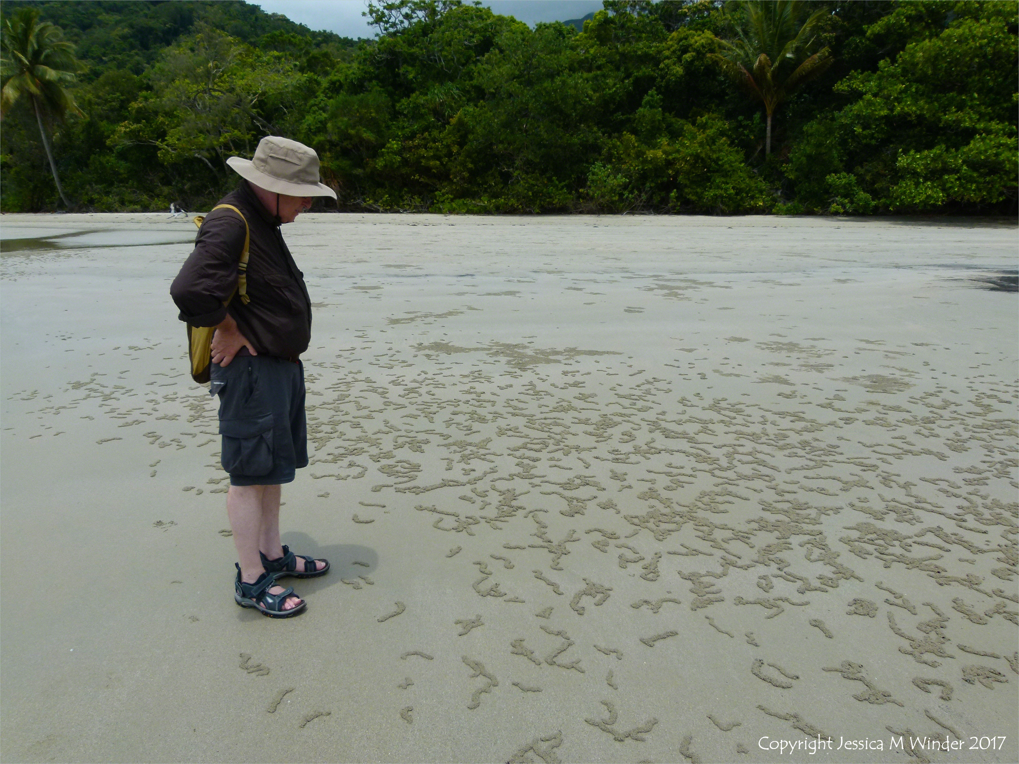 Patterns Made by Feeding Crabs 3 – Patterns of sand pellets from the feeding activities of crabs in wetter enriched beach sediments near shore-growing vegetation on Cape Tribulation beach where the rainforest meets the sea in Queensland, Australia.