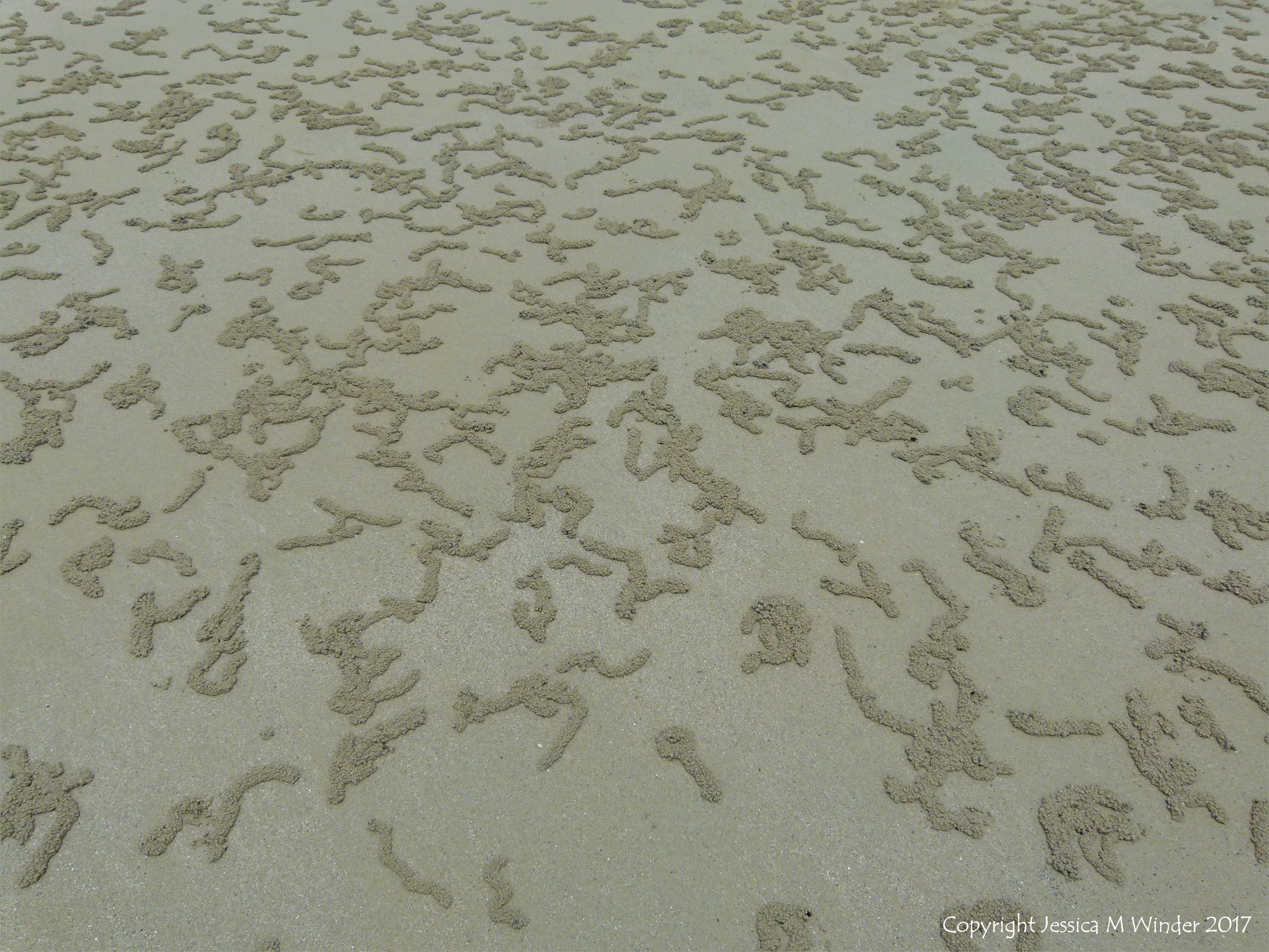 Patterns Made by Feeding Crabs 4 – Patterns of sand pellets from the feeding activities of crabs in wetter enriched beach sediments near shore-growing vegetation on Cape Tribulation beach where the rainforest meets the sea in Queensland, Australia.
