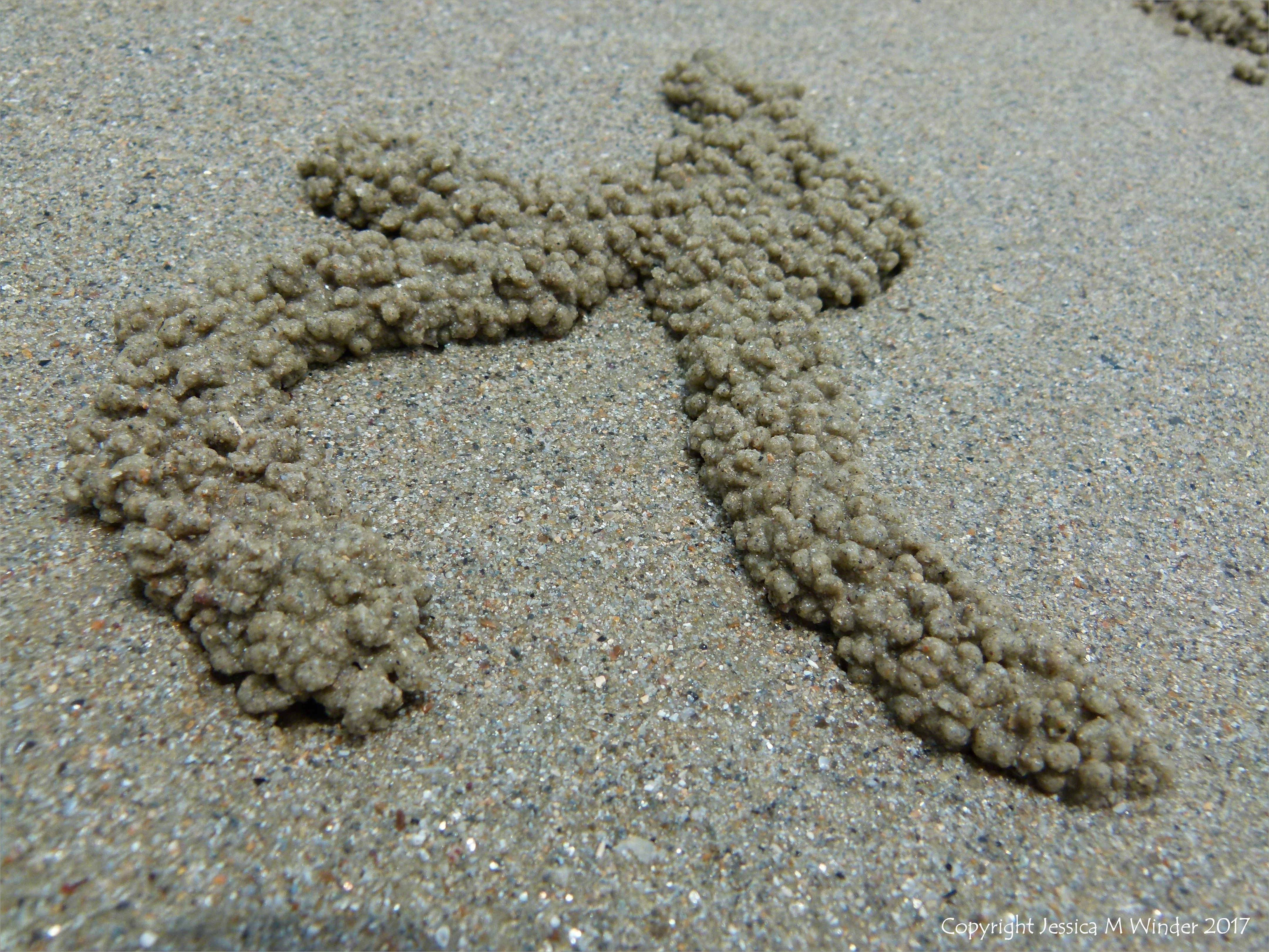 Patterns Made by Feeding Crabs 8 – Patterns of sand pellets from the feeding activities of crabs in wetter enriched beach sediments near shore-growing vegetation on Cape Tribulation beach where the rainforest meets the sea in Queensland, Australia.