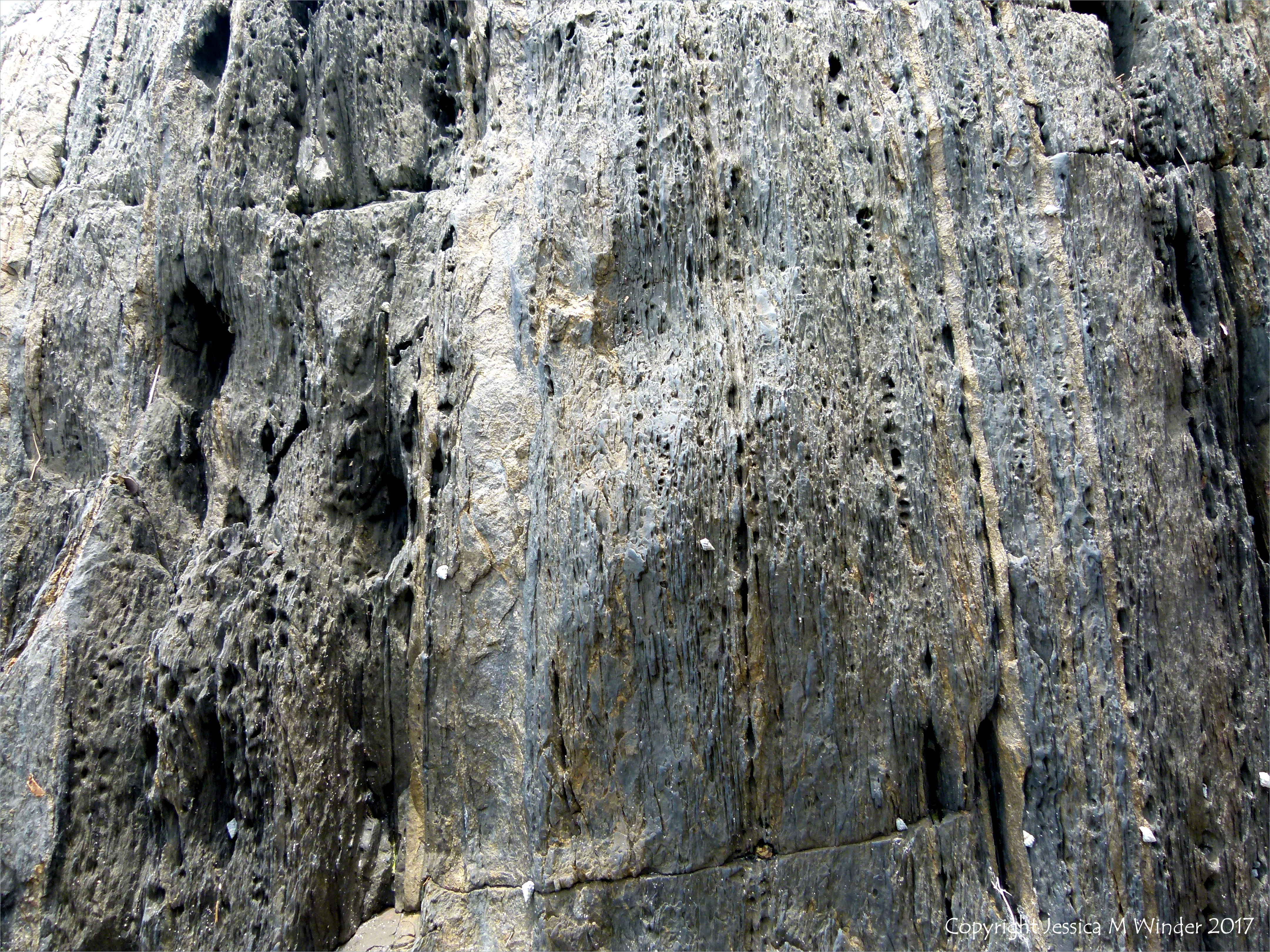Rocks at Cape Tribulation 18 – Close-up of rock texture and pattern at Cape Tribulation. Meta-sedimentary rocks possibly meta-turbidites from the Hodkingson Formation on the east coast of Australia in Queensland.