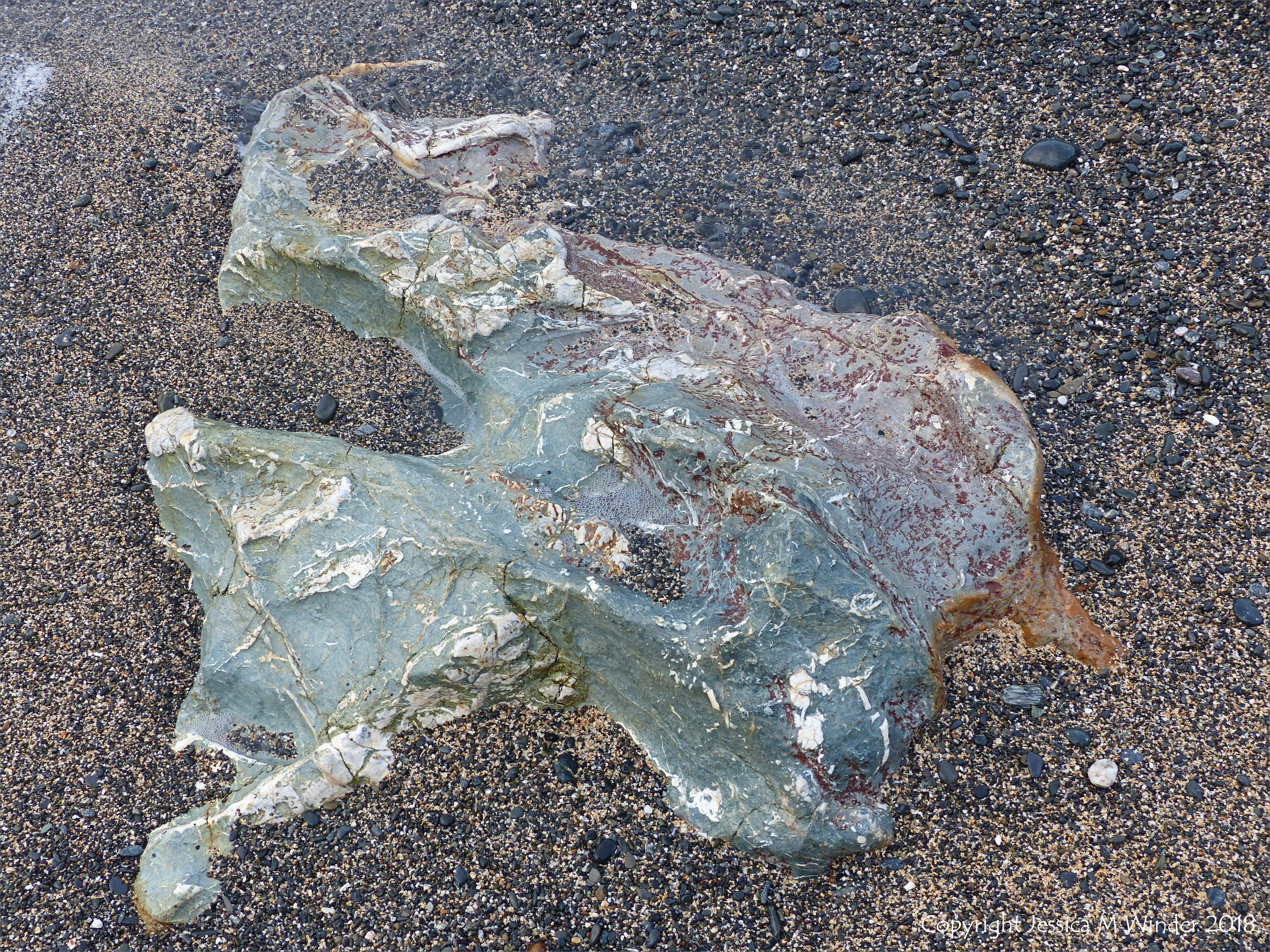 Polurrian Rocks 48 – Rock outcrop (or boulder) on beach at Polurrian Cove in Cornwall in the Lizard Fault Boundary Fault zone.